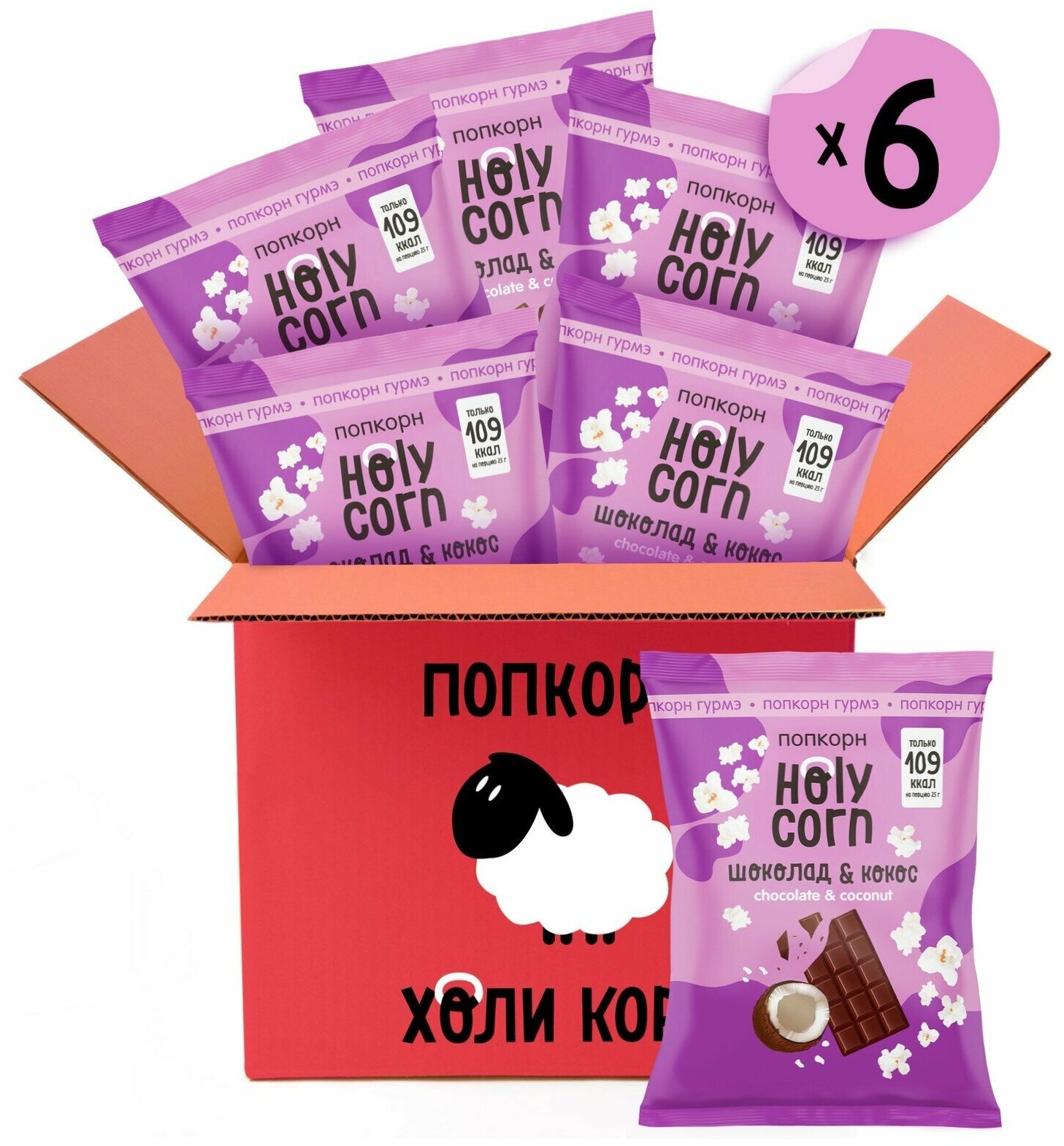 Попкорн готовый Holy Corn "Шоколад & кокос" Стандартная пачка 50 г х 6 шт интересное: