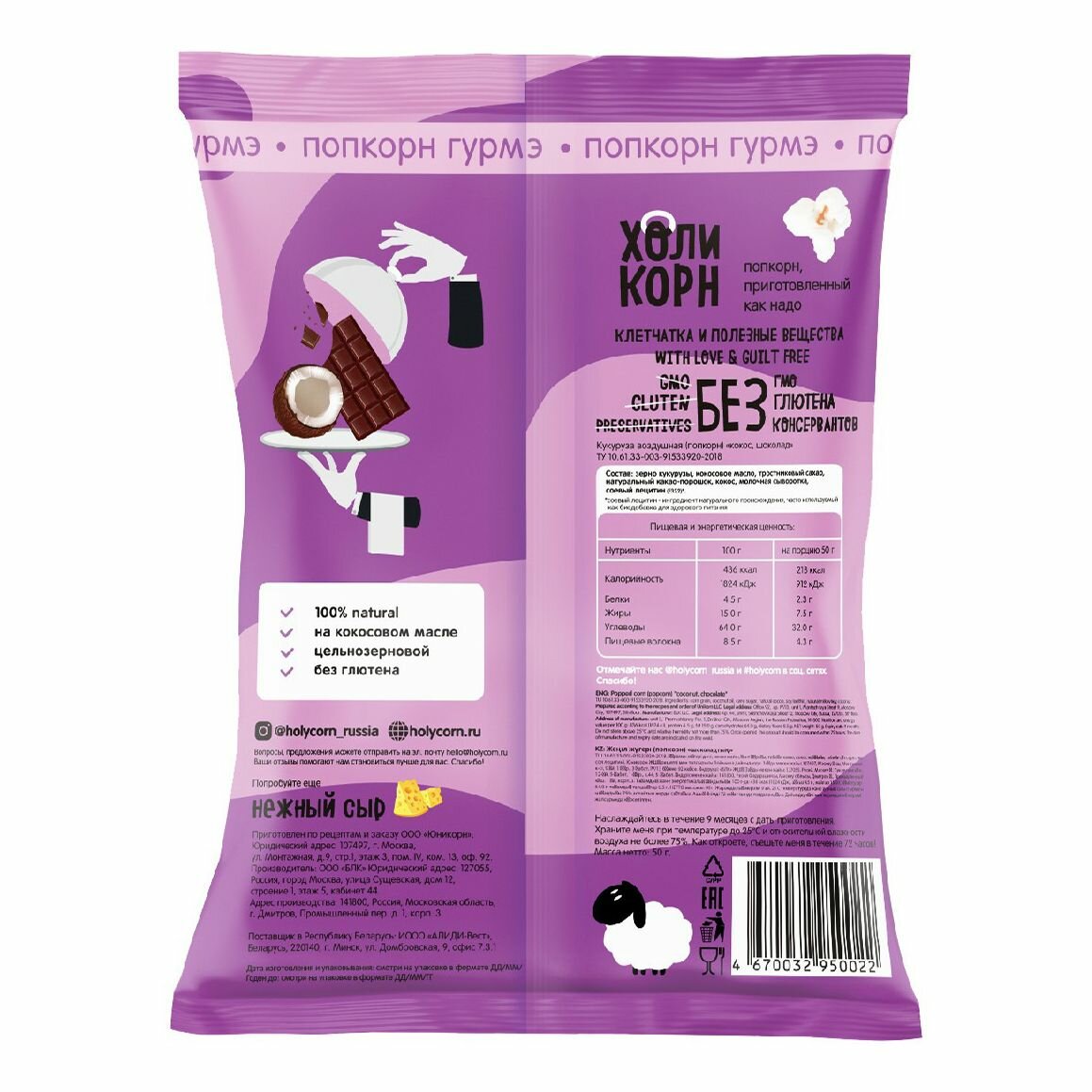 Попкорн Holy Corn шоколад и кокос 50 г интересное: