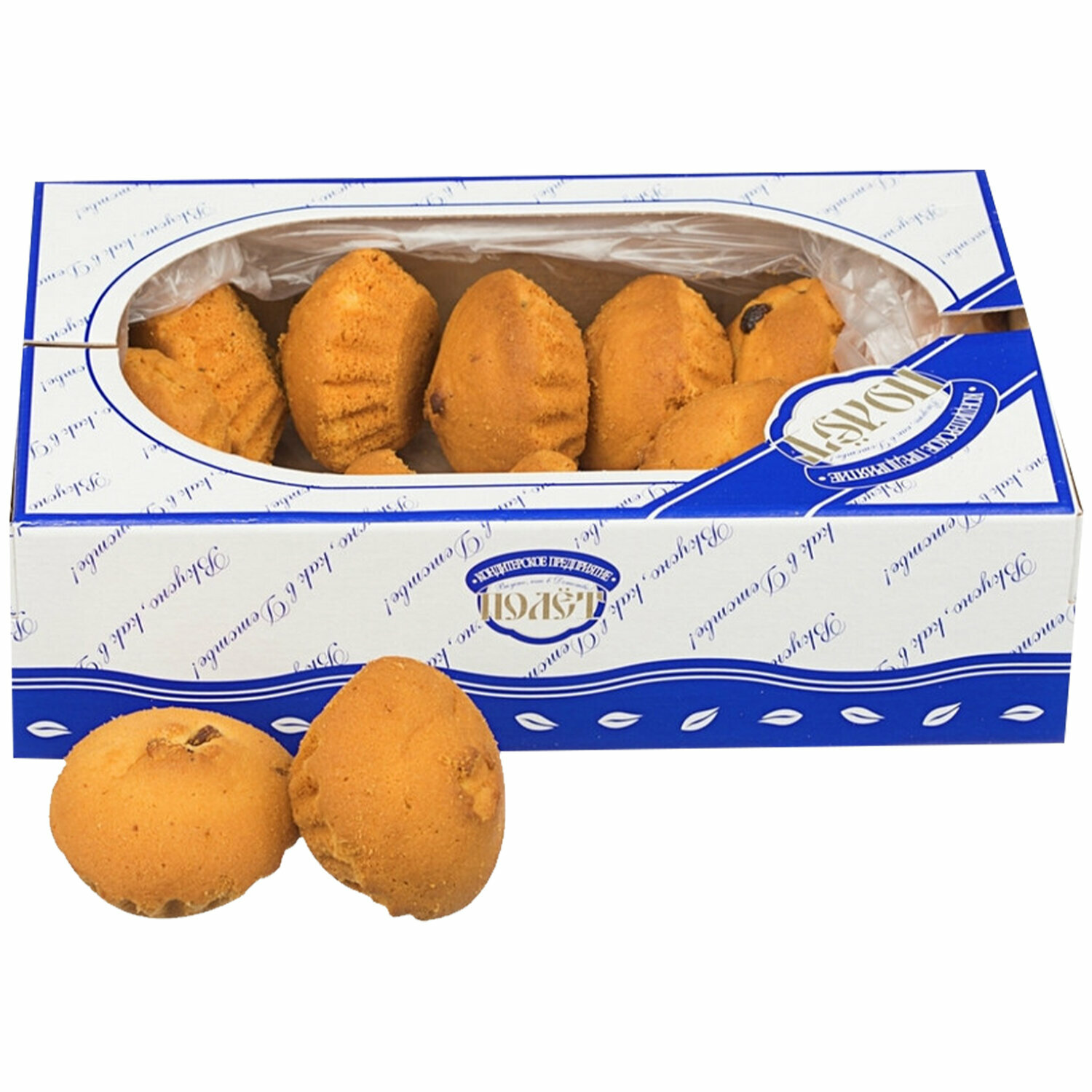 | Состав | мука пшеничная в/с, сахар, маргарин (рафинированные дезодорированные растительные масла, вода, эмульгаторы: моно- и диглицериды жирных кислот; соль пищевая, ароматизатор, краситель: каротины, регулятор кислотности - лимонная кислота), изюм, меланж, вода питьевая, влагоудерживающий агент – глицерин, разрыхлитель – гидрокарбонат натрия (сода пищевая), консервант – сорбат калия, ароматизатор |