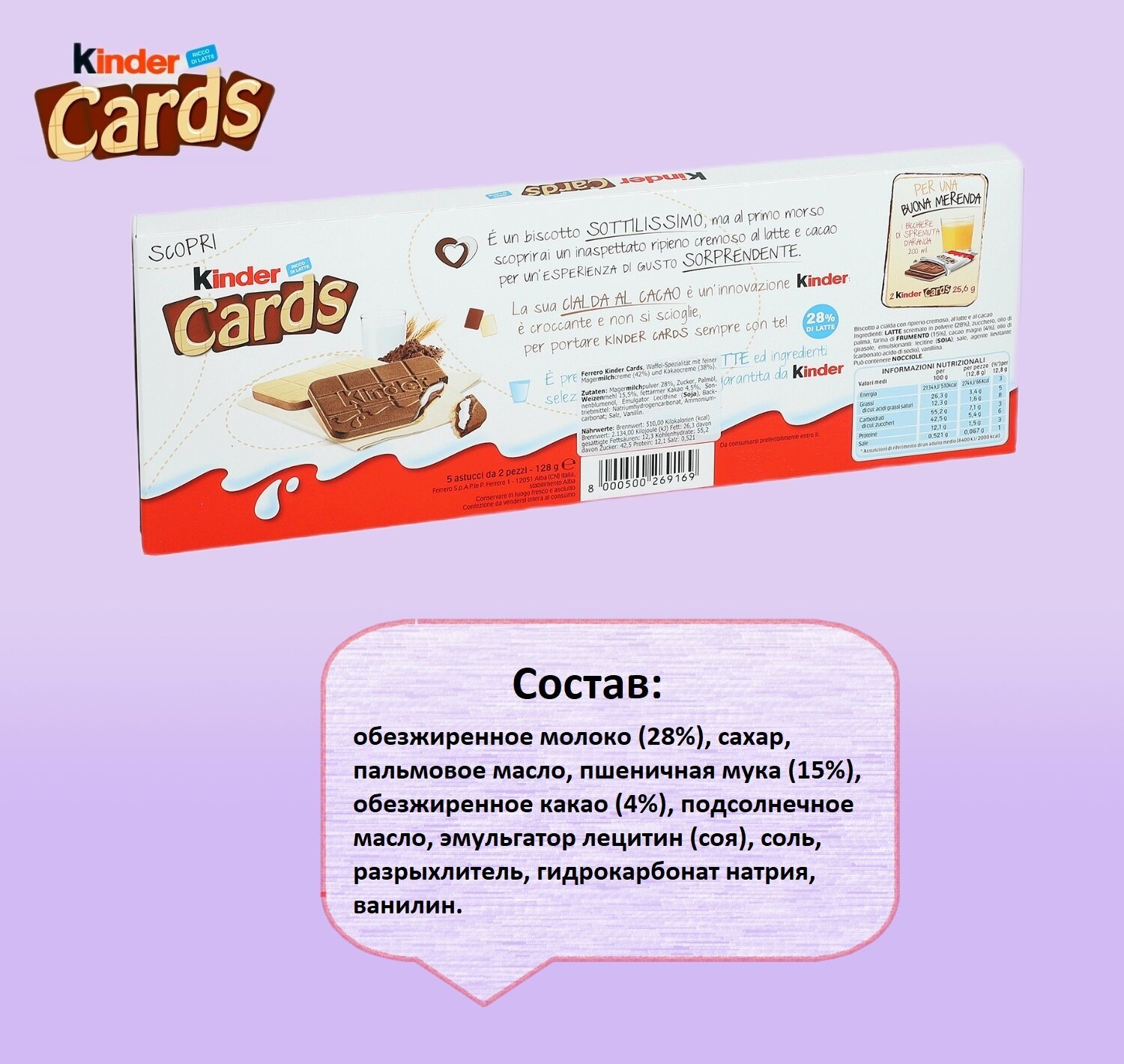 СохранитьШоколадно-молочное печенье Kinder Cards, 128 гр интересное: