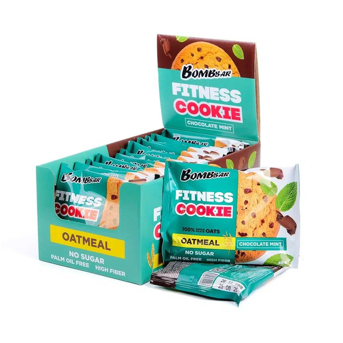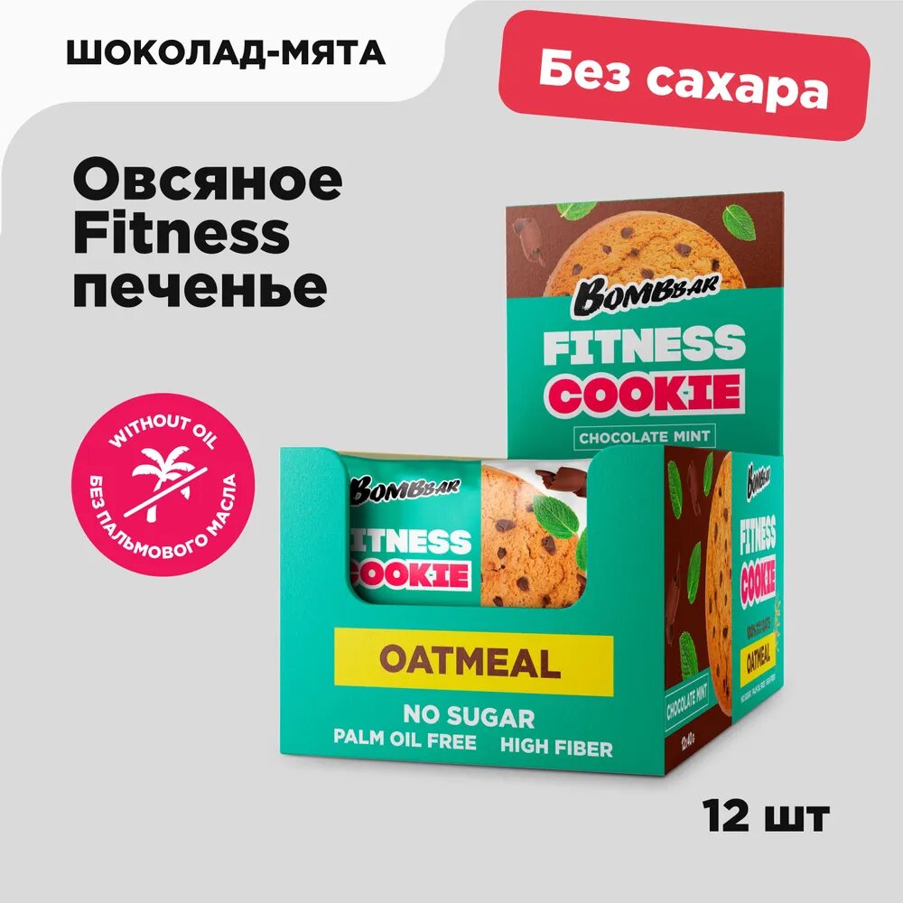 Купить Печенье овсяное без сахара Bombbar Fitness Cookie, 12 шт по 40 г, вкус: шоколад-мята