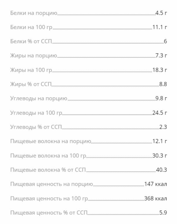| Энергетическая ценность в 100 г | 368 ккал |