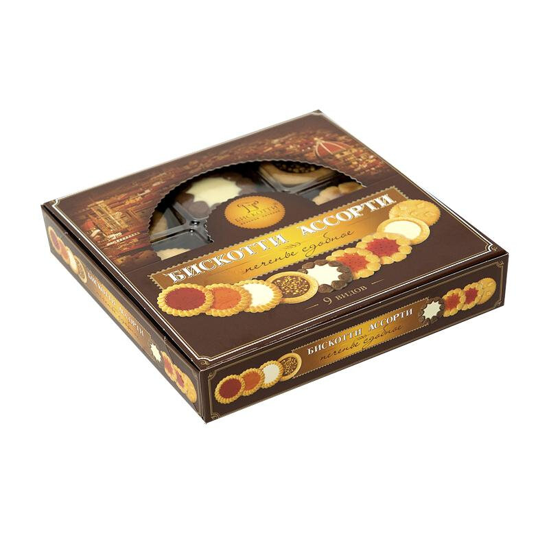 Печенье бискотти (Россия), ассорти 9 видов, сдобное, 345 г, картонная коробка