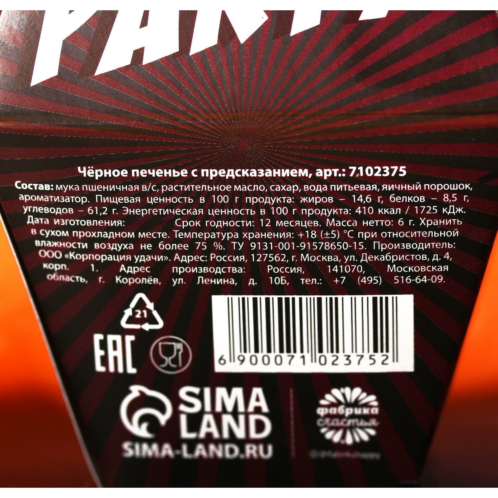 Печенье с предсказанием на хэллоуин «Печеньки или жизнь», черное, 1 шт, 6 г