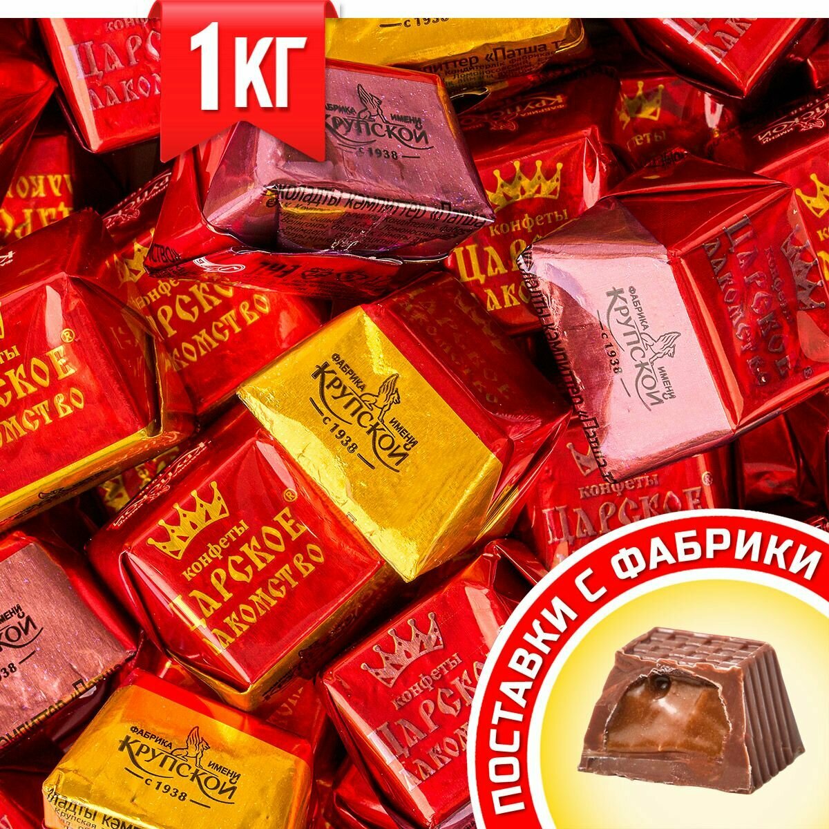 Конфеты Фабрика им. Крупской Царское лакомство, шоколадно- и молочно-кремовая начинка, 1 кг, флоу-пак
