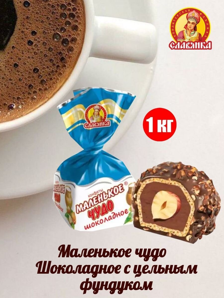 Конфеты Славянка Маленькое чудо, шоколадное с цельным орехом, 1 кг интересное: