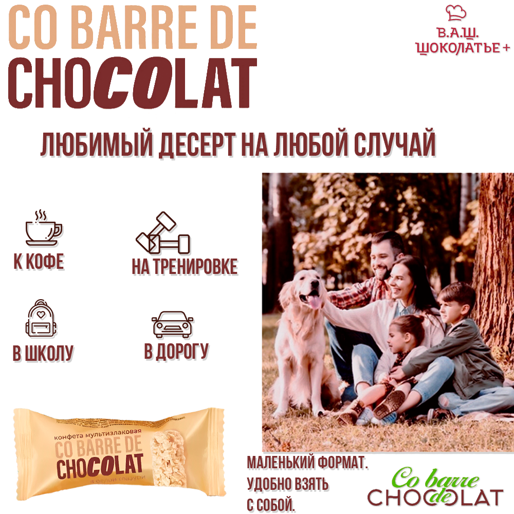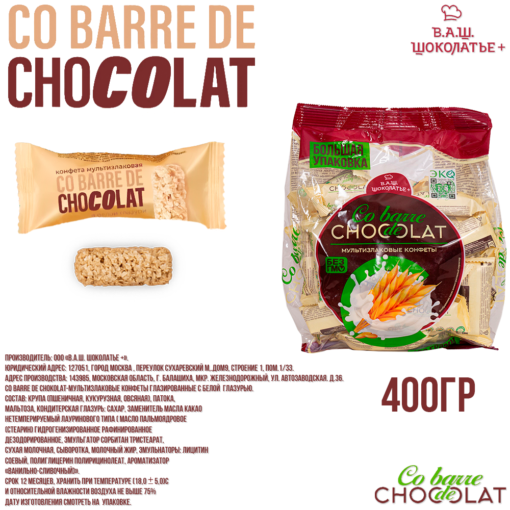 Конфеты В.А.Ш. Шоколатье Co barre de Chocolat (Кобардье) мультизлаковые с белой глазурью, 400 г