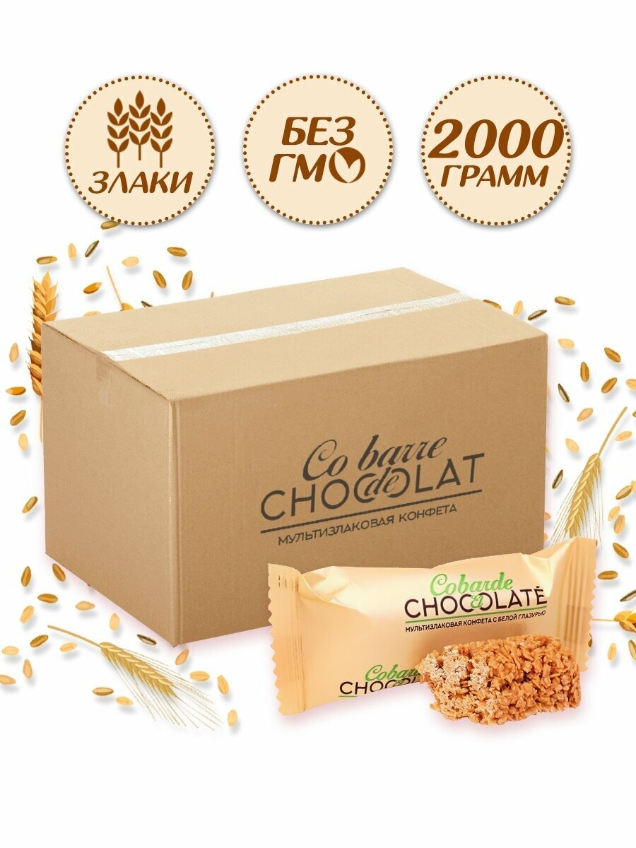 Купить Конфета Мультизлаковая Co barre de CHOCOLAT с белой глазурью, гофрокороб 2кг