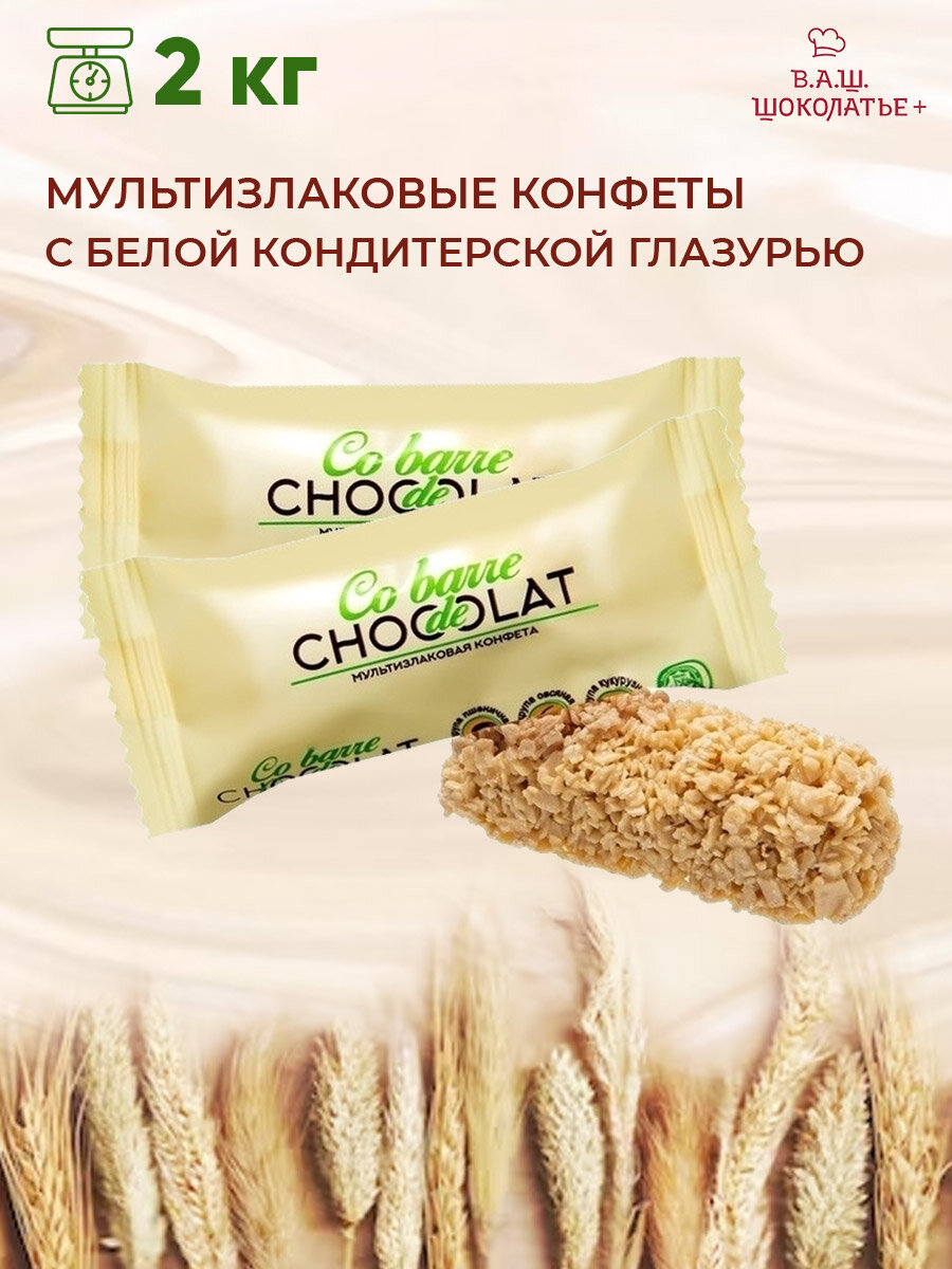 Мультизлаковые конфеты с белой кондитерской глазурью, Co barre de CHOCOLAT, 2 кг.