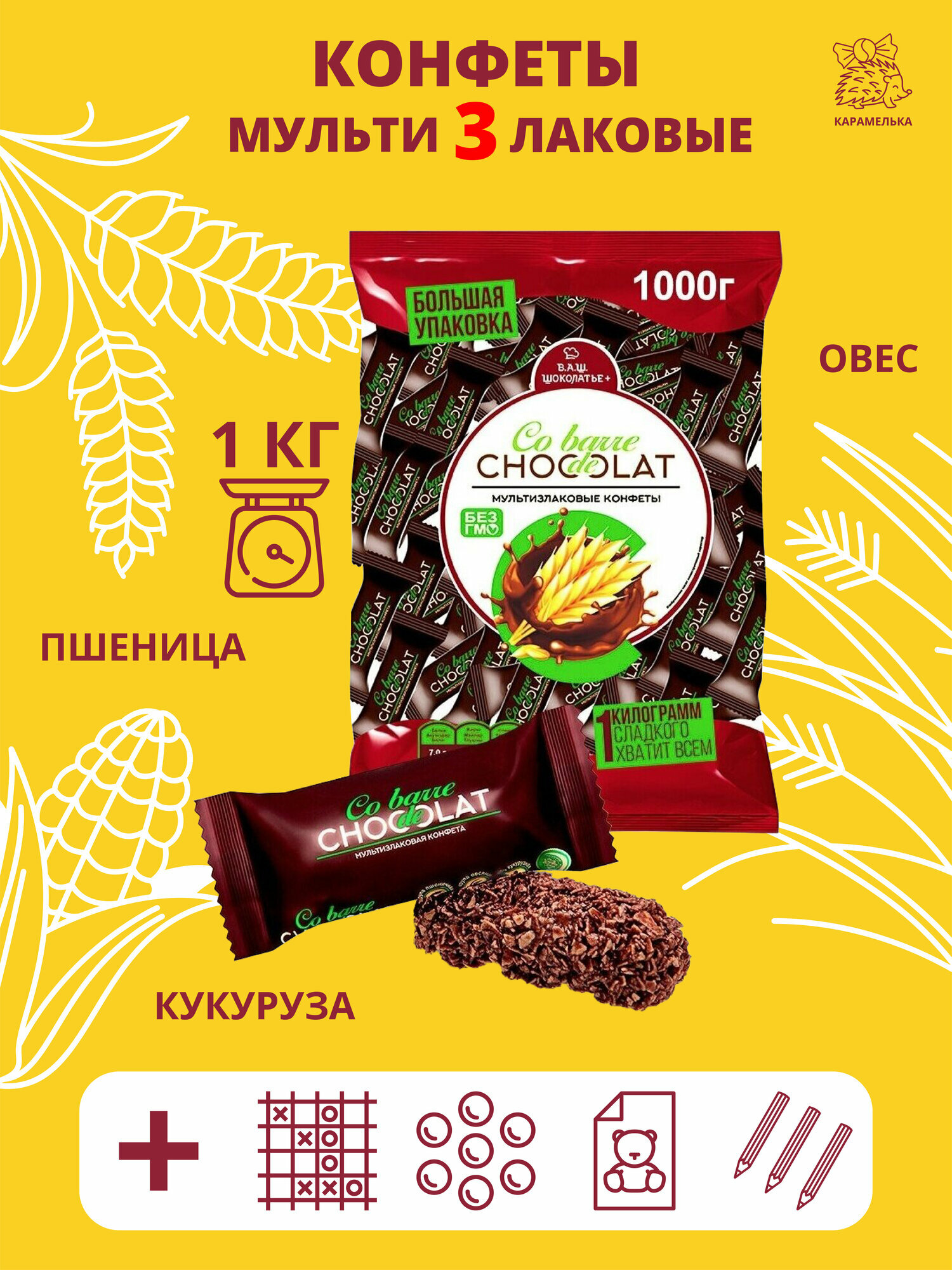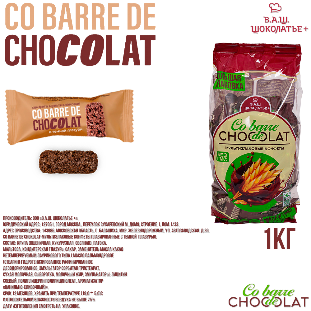 Конфеты мультизлаковые Co barre de CHOCOLAT с тёмной кондитерской глазурью 1000гр / Вкус, знакомый с детства.