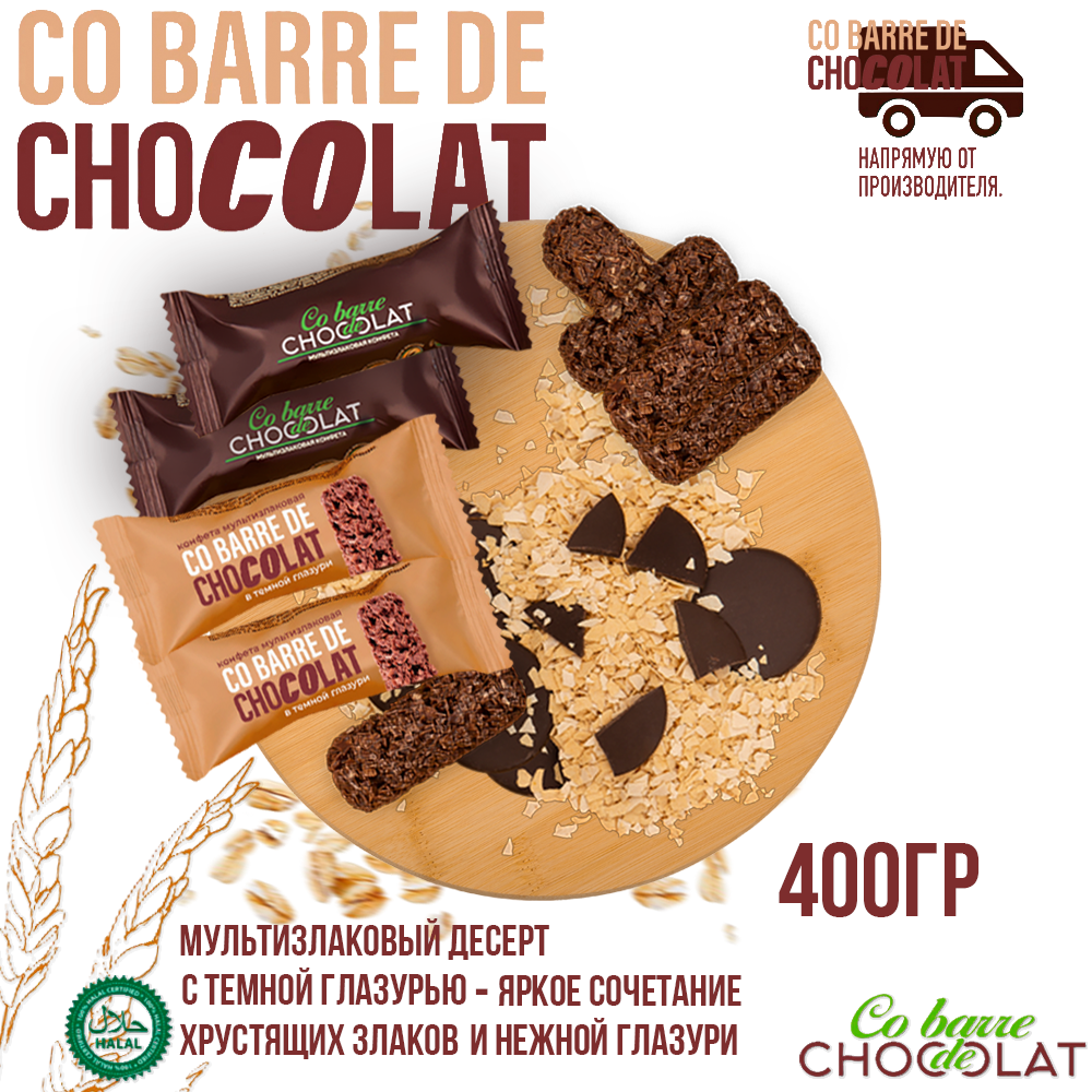 Конфеты мультизлаковые Co barre de CHOCOLAT с тёмной кондитерской глазурью 1000гр / Вкус, знакомый с детства.