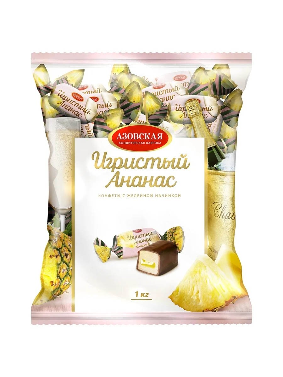 Азовская кондитерская фабрика Конфеты помадные Игристый Ананас глазированный с желейной начинкой, 1 кг