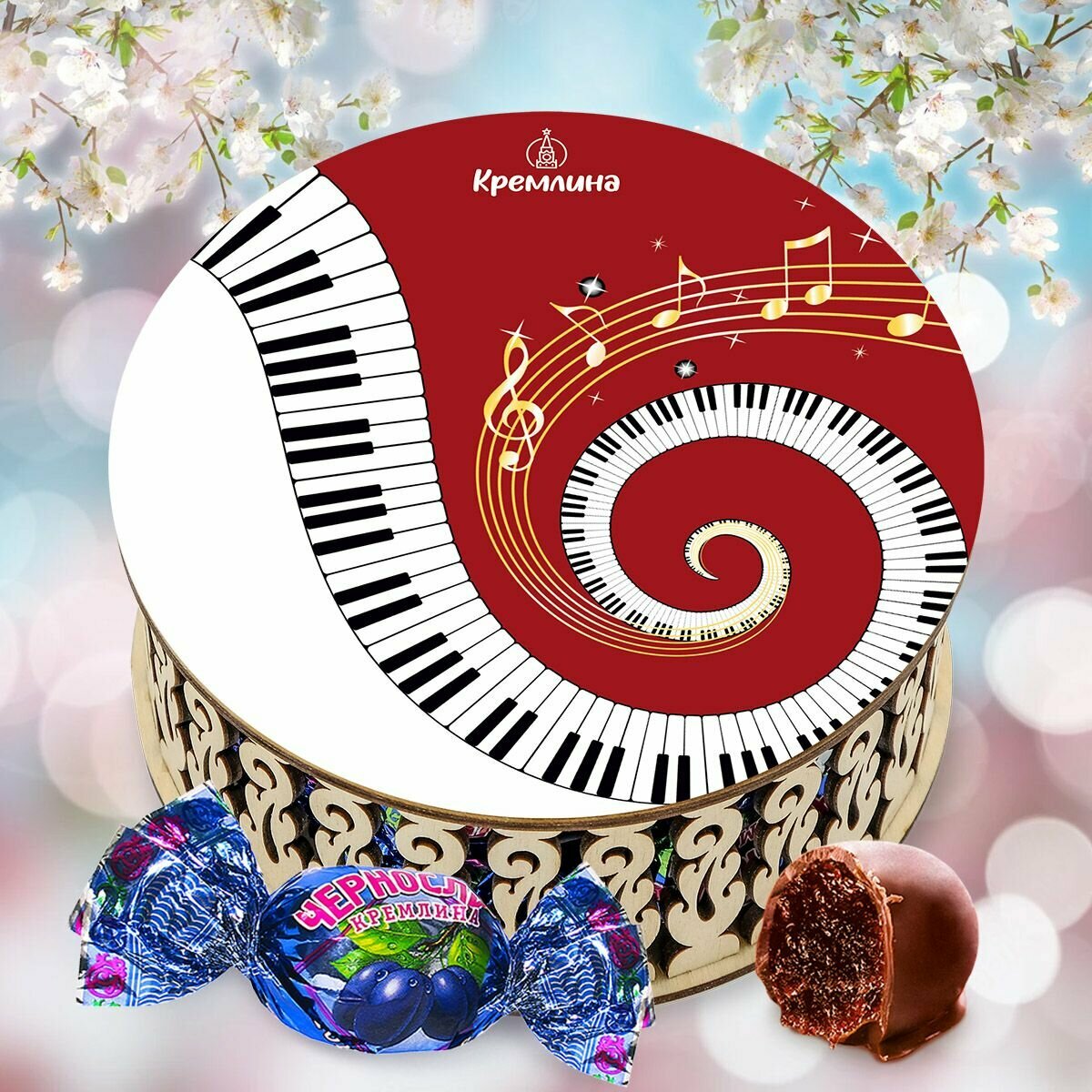 Купить Набор подарочных конфет Чернослив Шоколадный в резной шкатулке "Ноты", 400 грамм, подарок учителю на 1 сентября