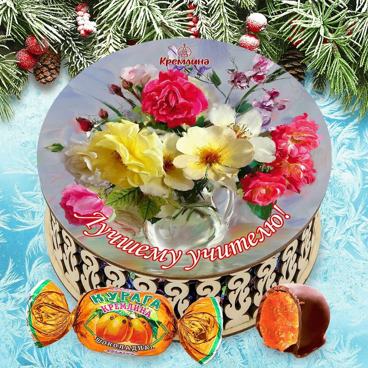 Конфеты подарочные на новый год 2025 Ассорти Кремлина фрукты шоколадные: Манго, Груша, Апельсин, Финик и Инжир в коробке подарочной "С новым годом!" 500 г