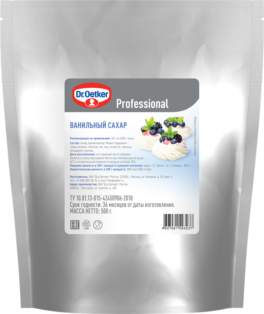 Dr.Bakers Professional Ванильный сахар с натуральной ванилью, 500 г