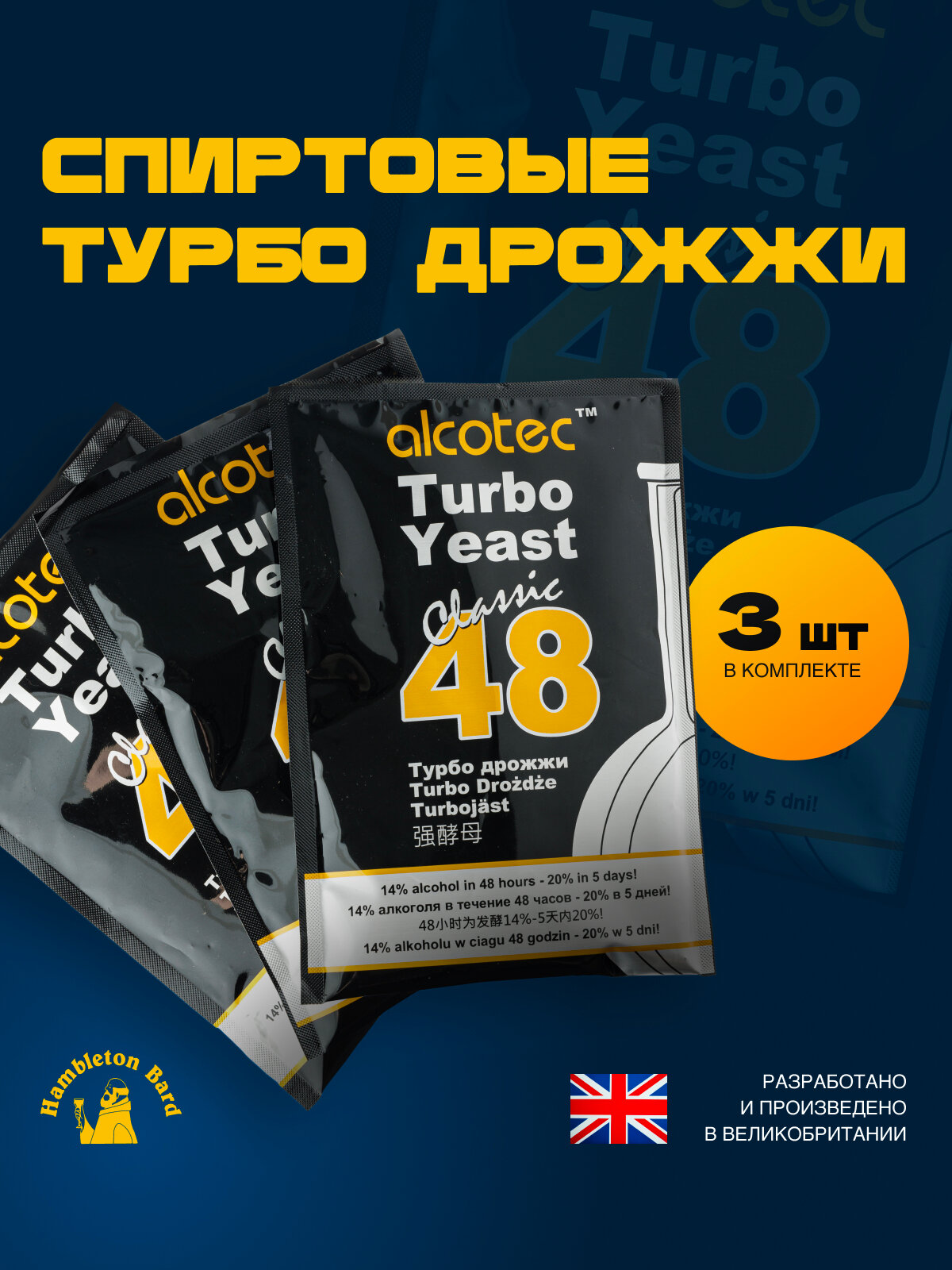 Спиртовые турбо дрожжи Alcotec Classic 48 Turbo/ Алкотек 48 дрожжи для самогона, для браги, для виски/ (комплект из 3 шт)