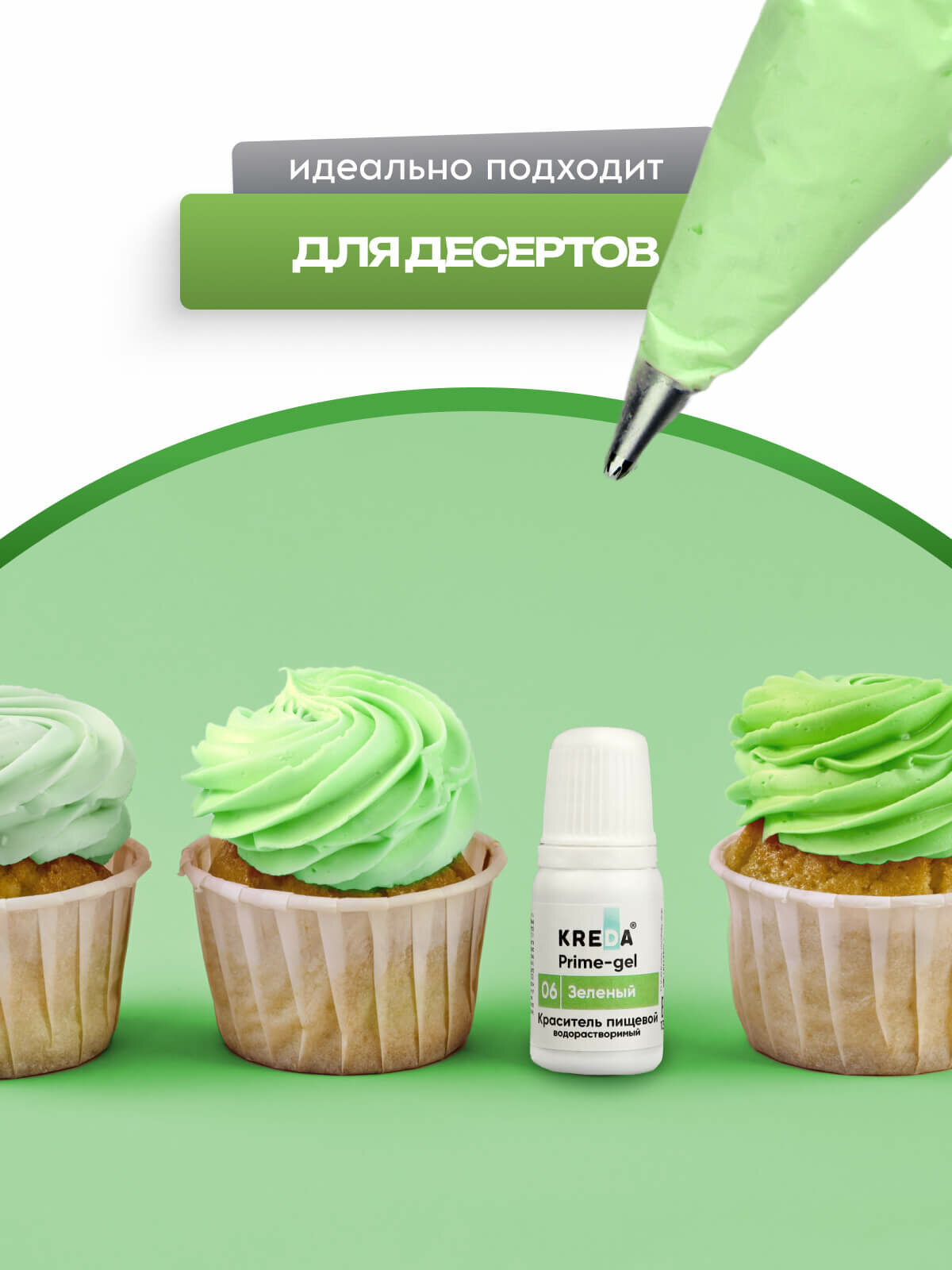 Купить Пищевой краситель Kreda Prime-gel, зеленый, 10 мл, гелевый, водорастворимый