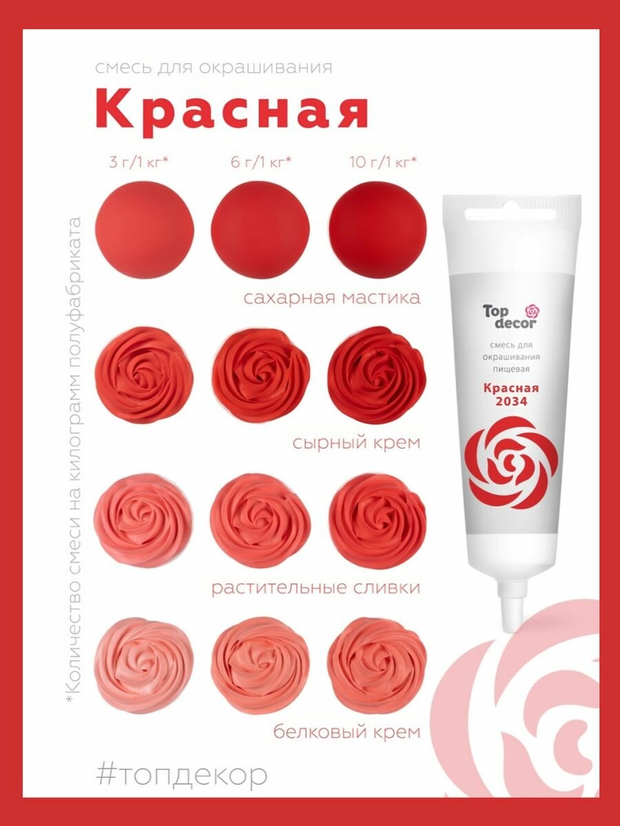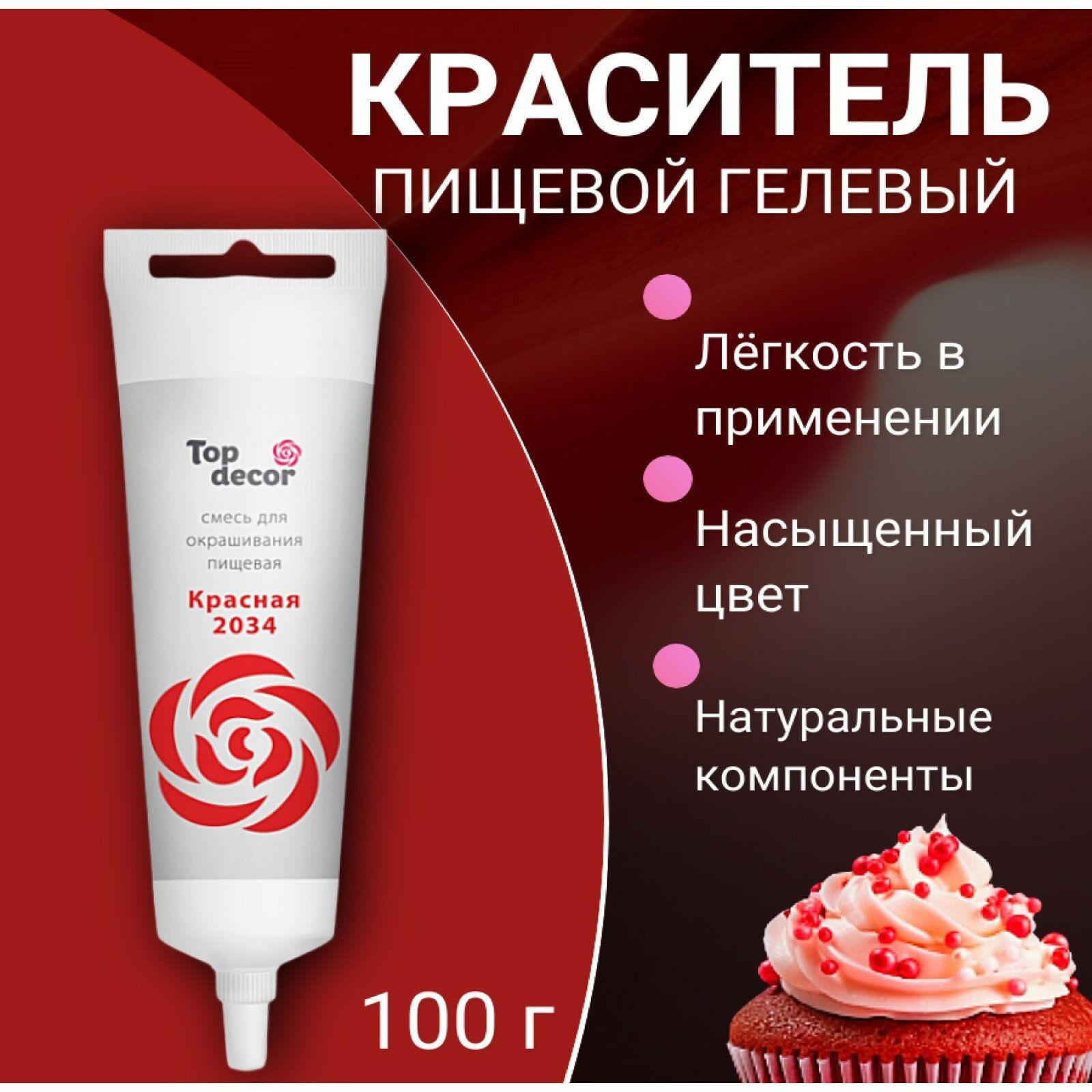 Пищевой краситель Top Decor гелевый, красный 2034, 100 г