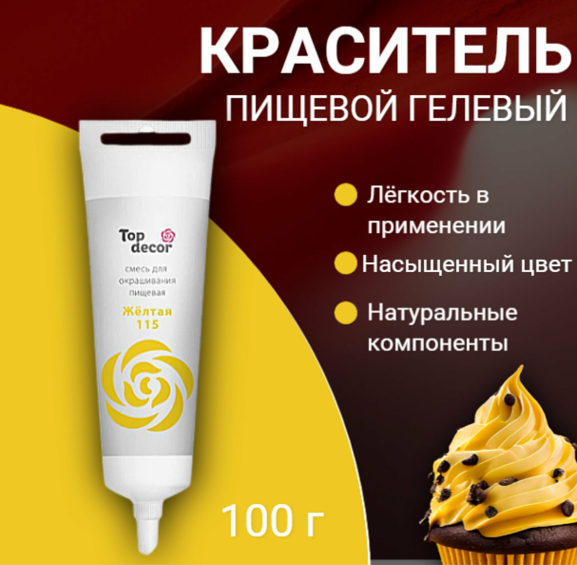 Пищевой краситель Top Decor гелевый, жёлтый 115, 100 г