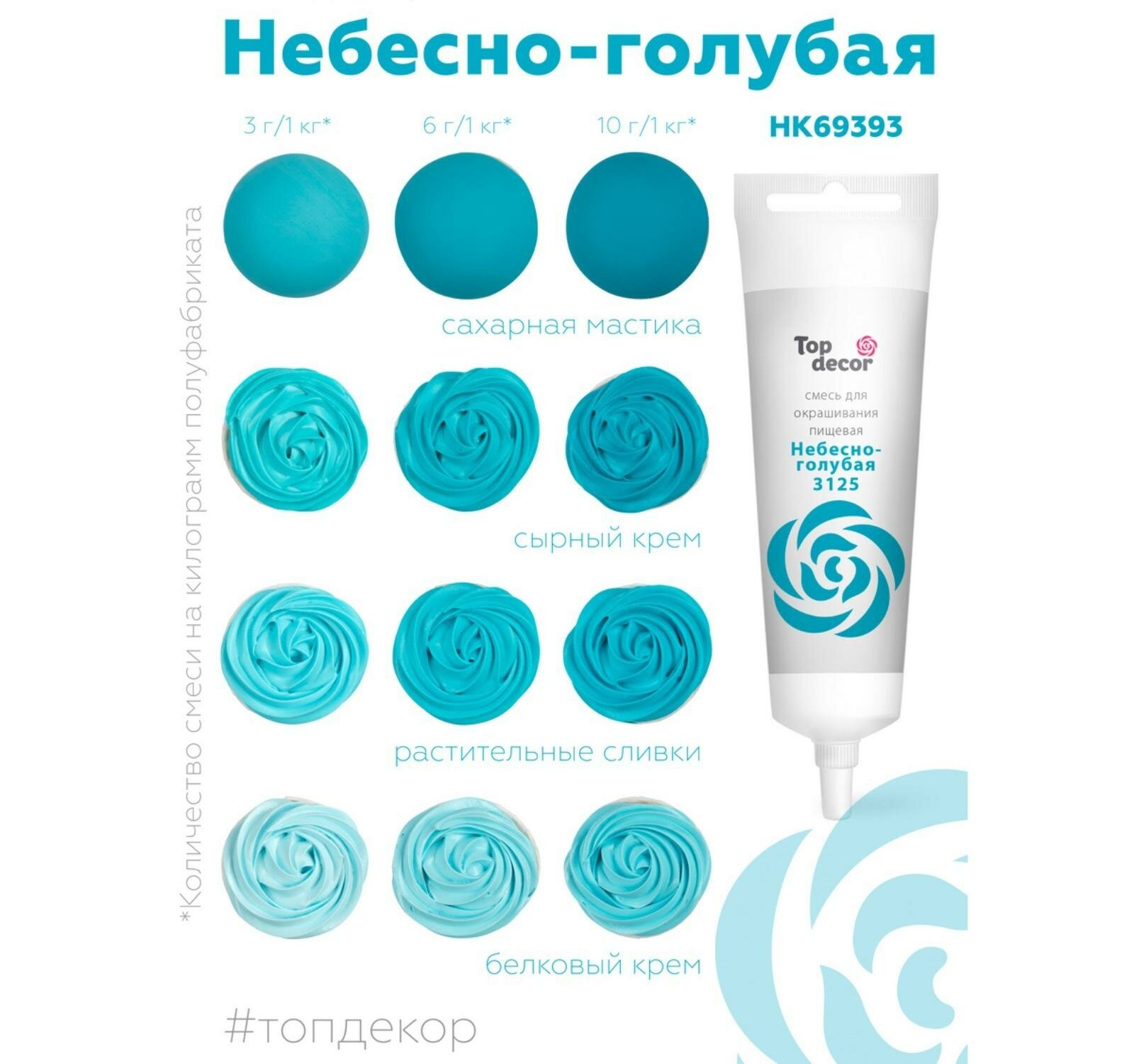 Пищевой краситель Top Decor гелевый, небесно-голубой 3125, 100 г