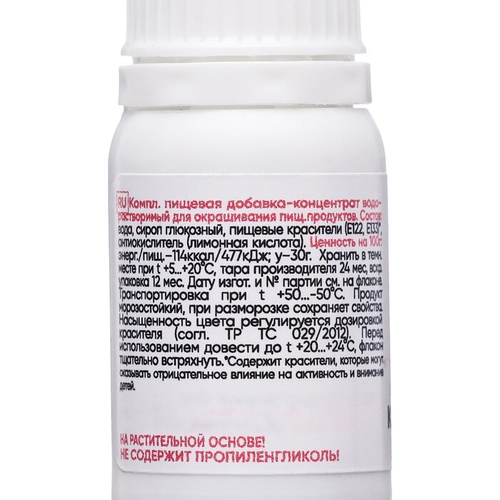 | Состав | вода дистиллированная, сироп глюкозный натуральный, пищевые красители, лимонная кислота |
