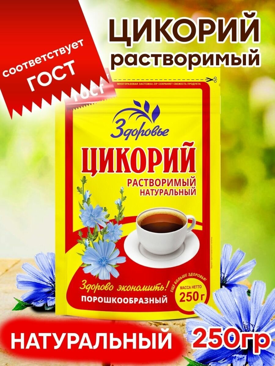 Цикорий растворимый Здоровье 100% натуральный порошок без кофеина без сахара 250 г