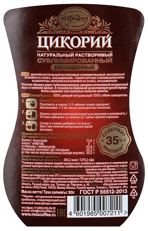 СохранитьЦикорий растворимый, Московская кофейня на паяхъ, "Насыщенный" 100% натуральный сублимированный 95 гр. интересное:
