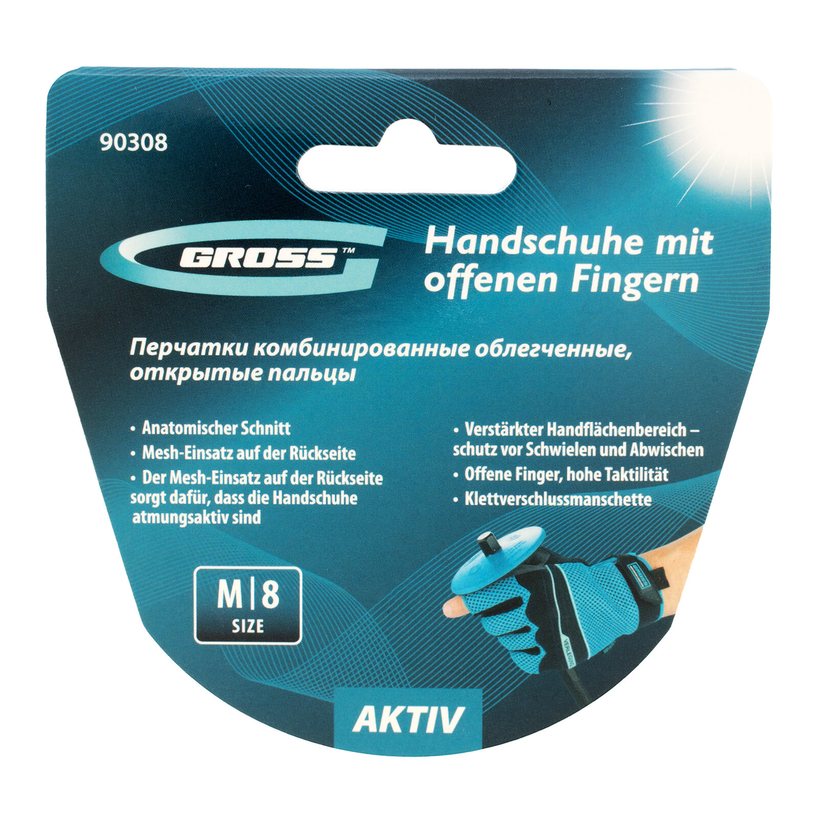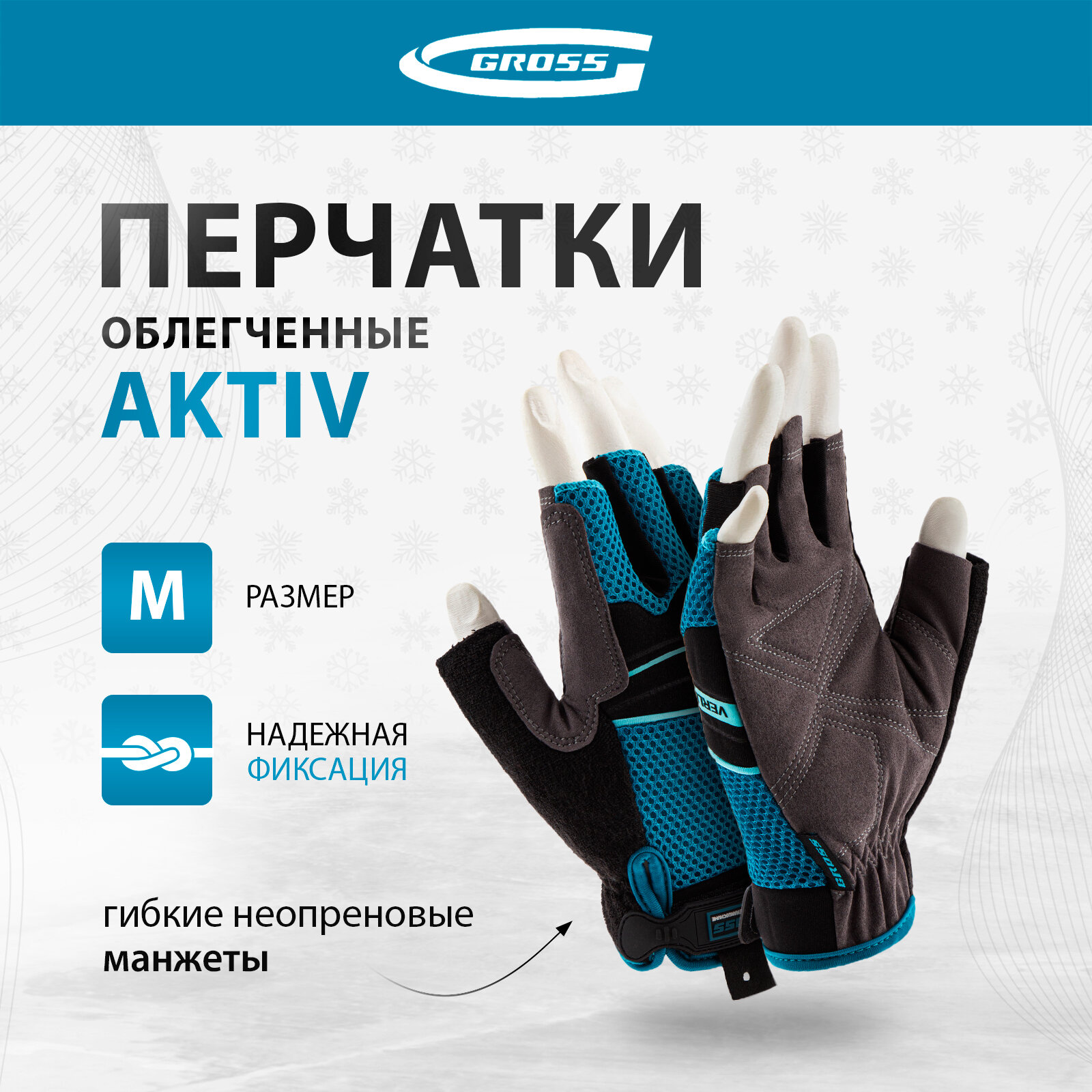 Перчатки комбинированные облегченные, открытые пальцы, Aktiv, размер М (8)// Gross 90308 .