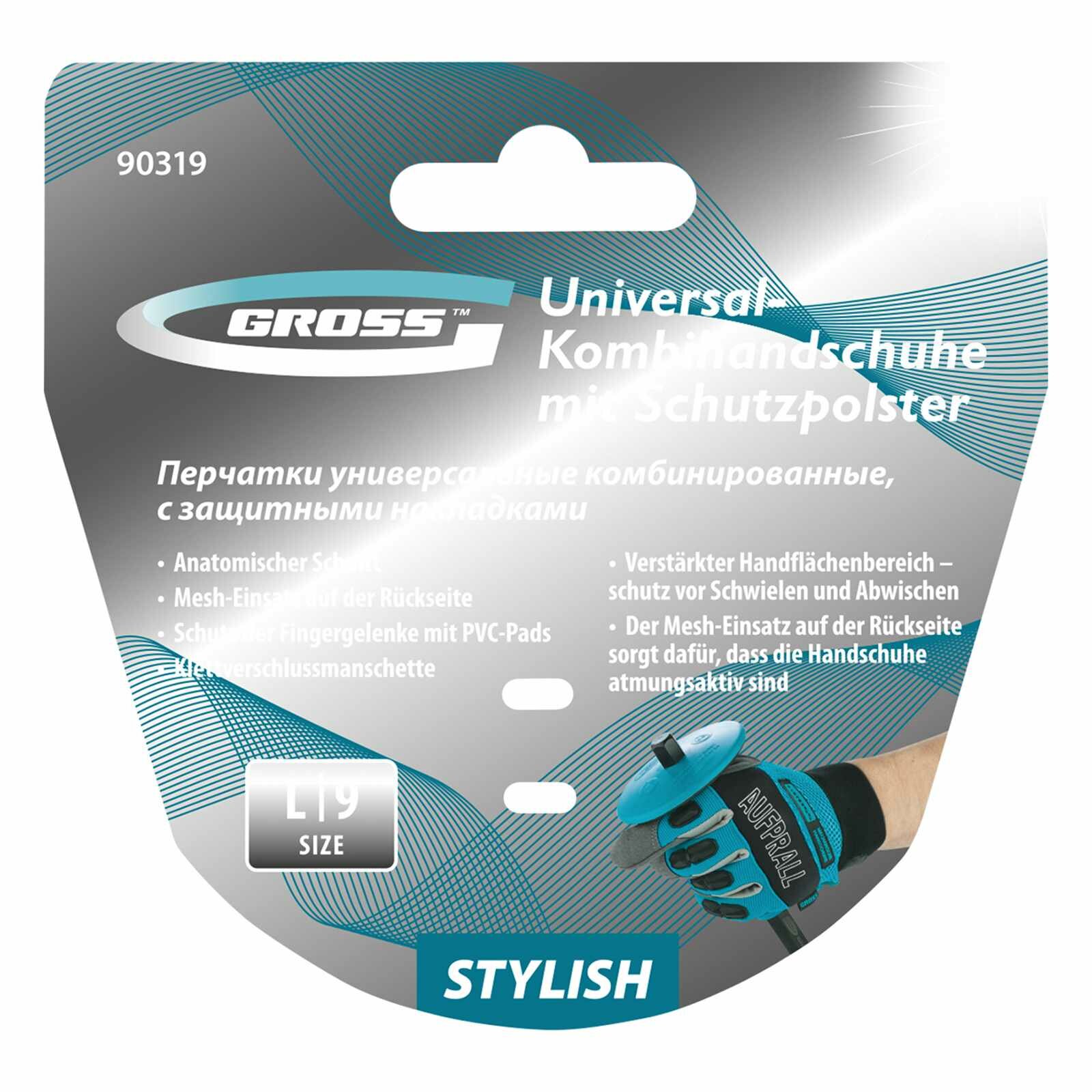GROSS Перчатки универсальные комбинированные, с защитными накладками, stylish, размер l (9) 90319