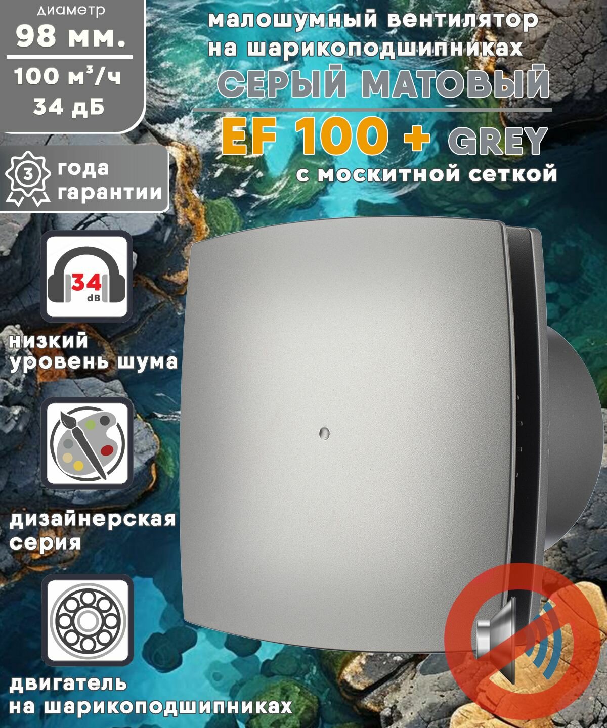 Вентилятор малошумный на шарикоподшипниках GREY EF-100 Plus диаметр 100 мм интересное: