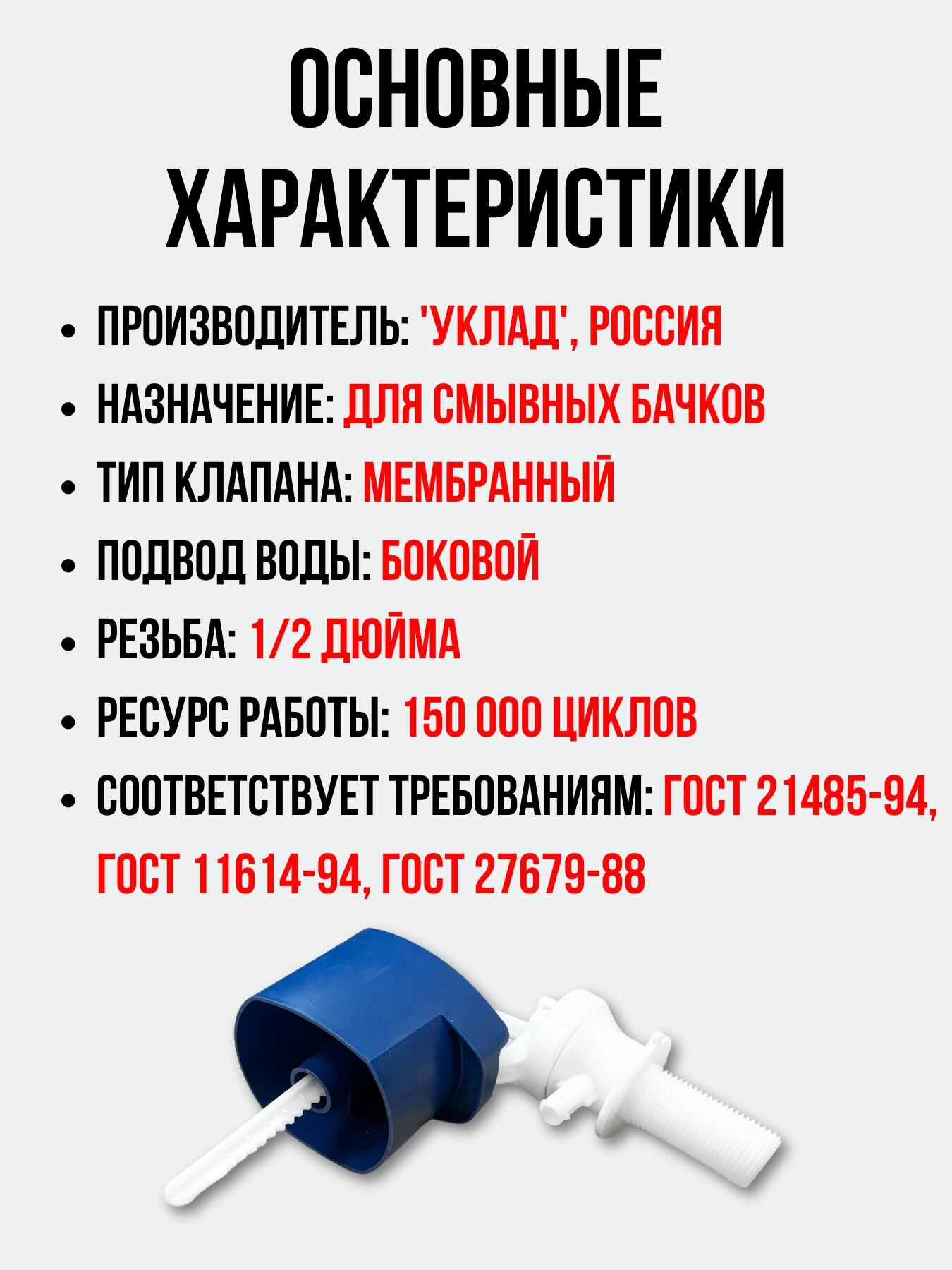 Клапан для сливного бачка уклад "КН-56" боковой подвод интересное: