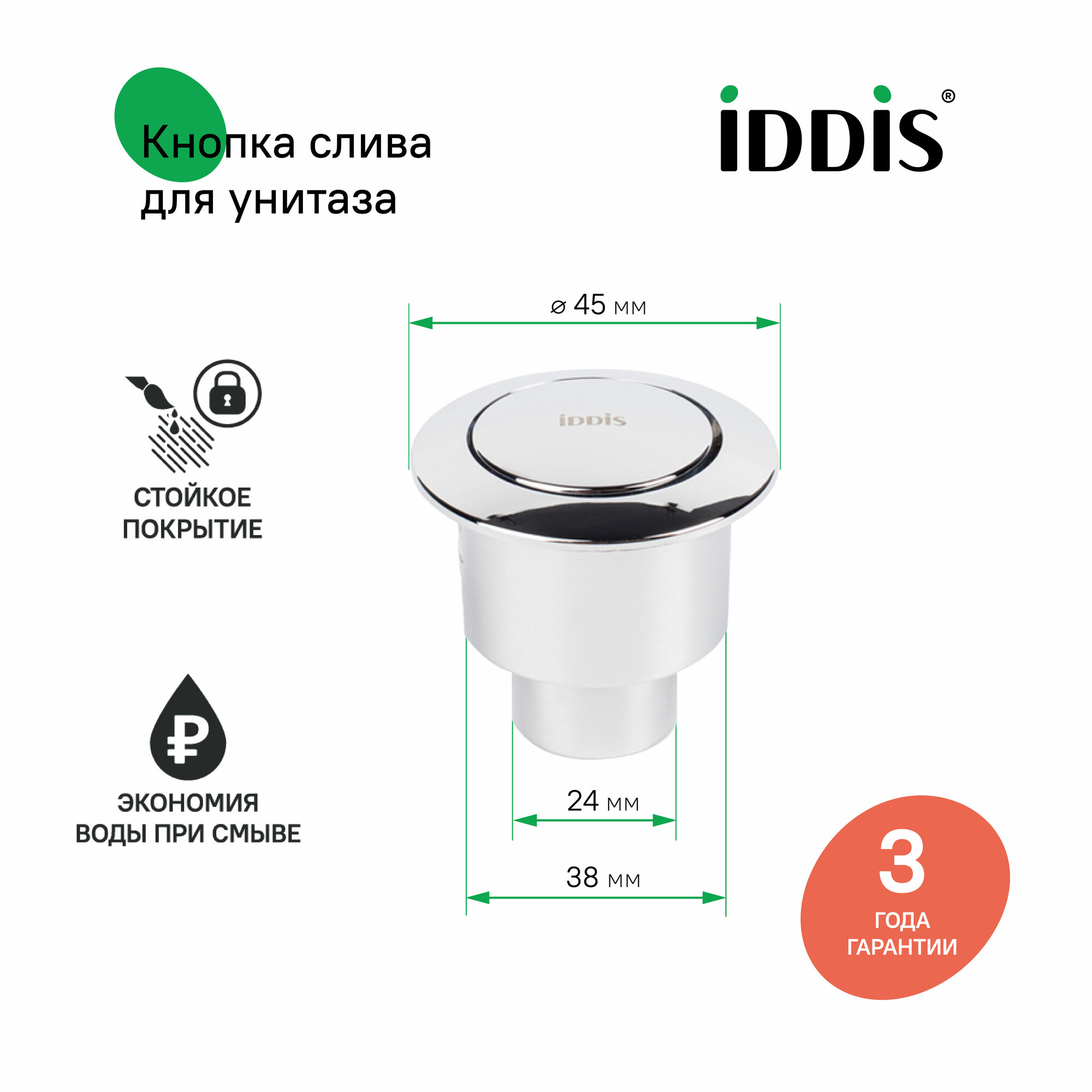 Кнопка слива для арматуры 1-ур 38 мм хром IDDIS 92038SB1AR интересное: