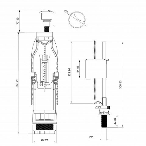 Арматура для бачка сливная/наливная нижнее подключение кнопка белый 1/реж универсал РБМ АС-17.1