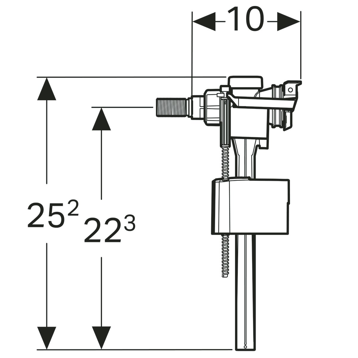 Арматура для бачка GEBERIT Impuls 333 136.730.00.3 впускной клапан, тип 333, подвод воды сбоку, 3/8" и 1/2", ниппель из латуни