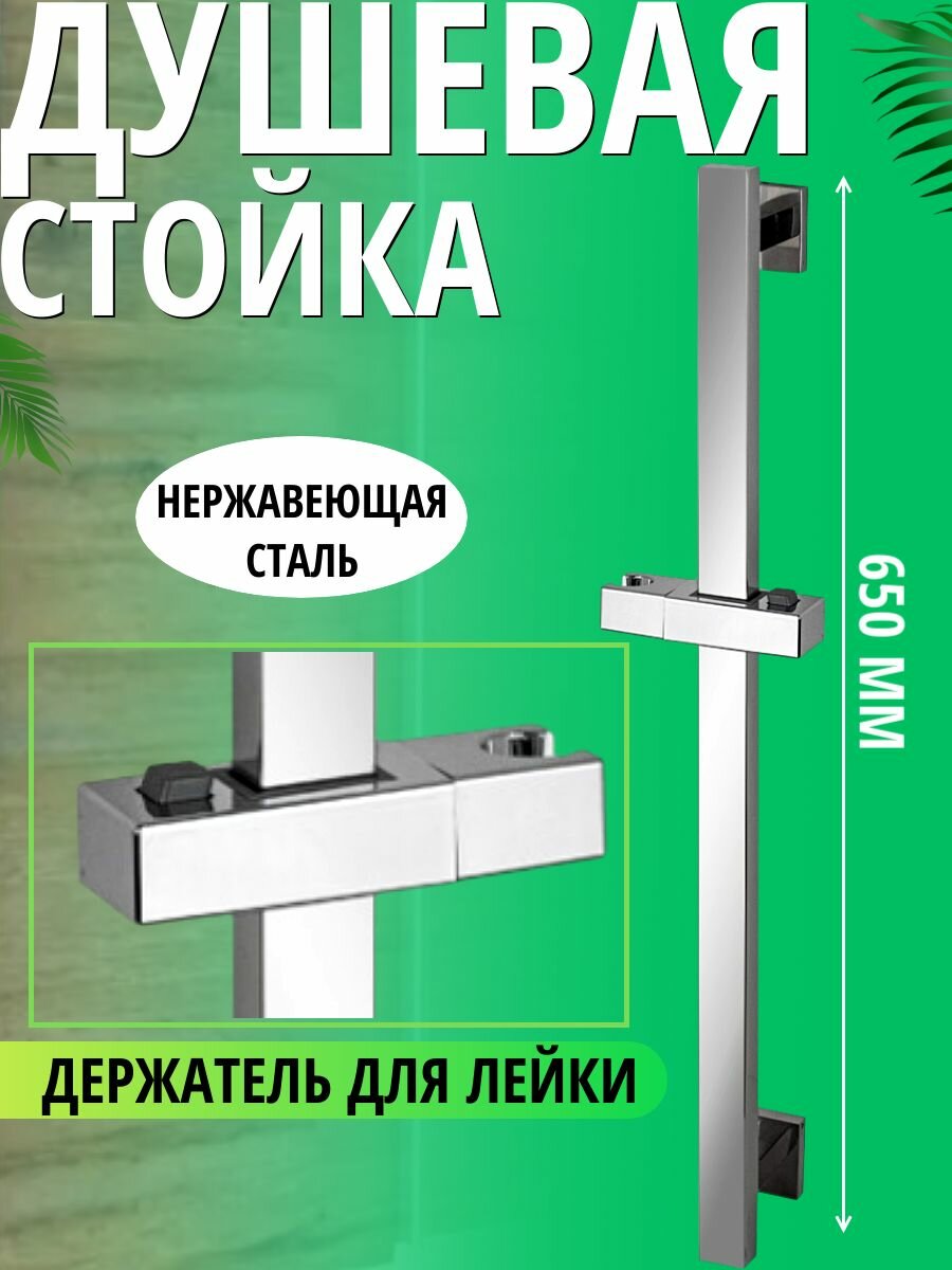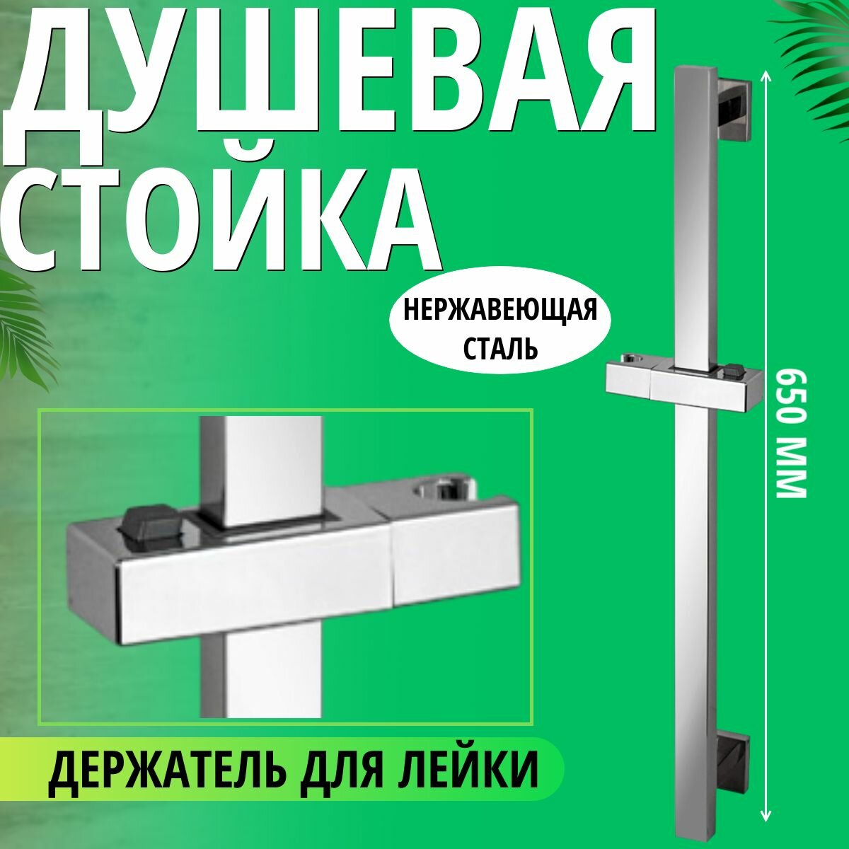 Стойка душевая, без лейки и шланга, из нержавеющей стали марки 304, квадратный профиль, цвет хром интересное: