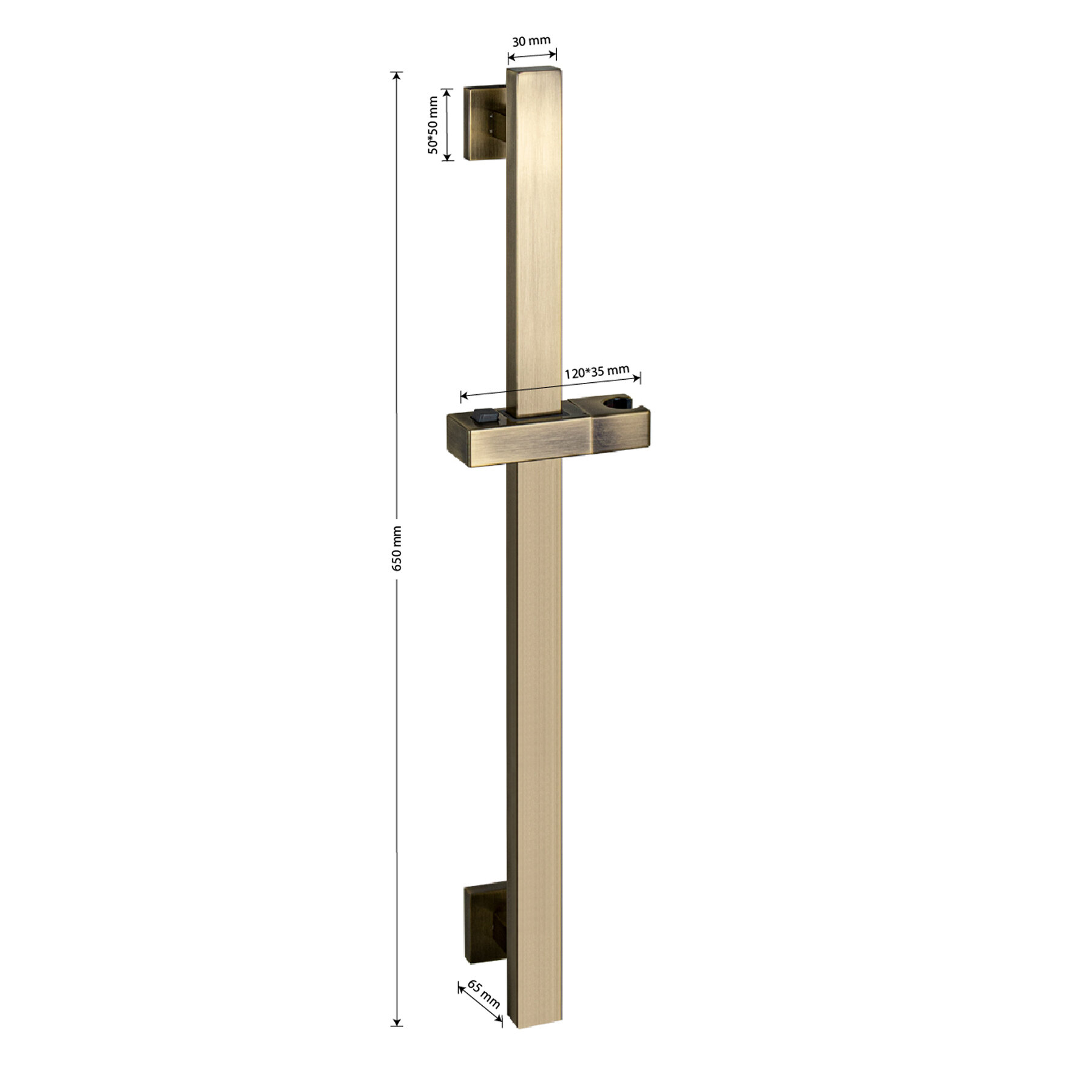 Стойка душевая, без лейки и шланга, из нержавеющей стали марки 304, квадратный профиль, цвет бронза