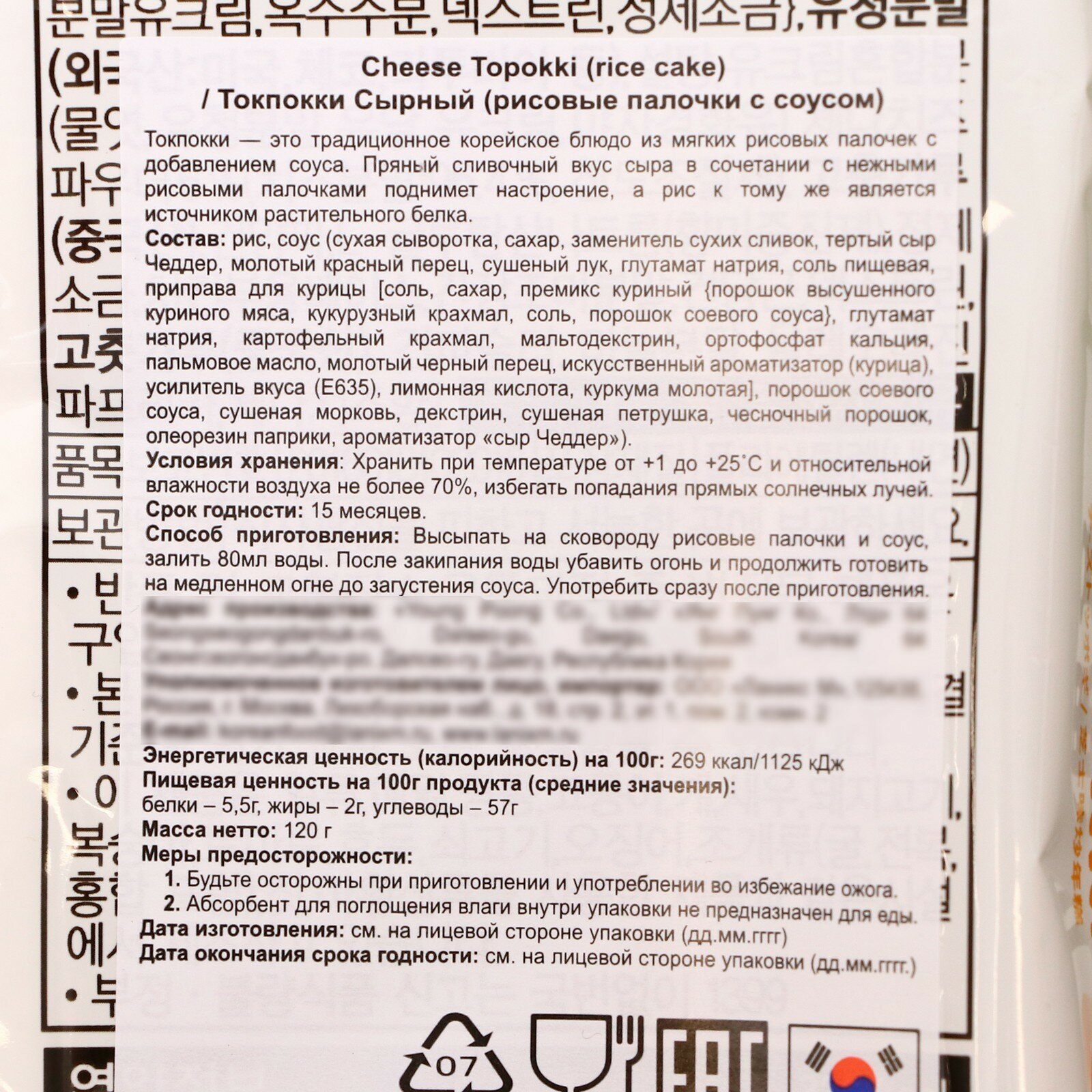 Cheese Topokki (rice cake) Топокки Сырный (рисовые палочки с соусом), стакан 120г