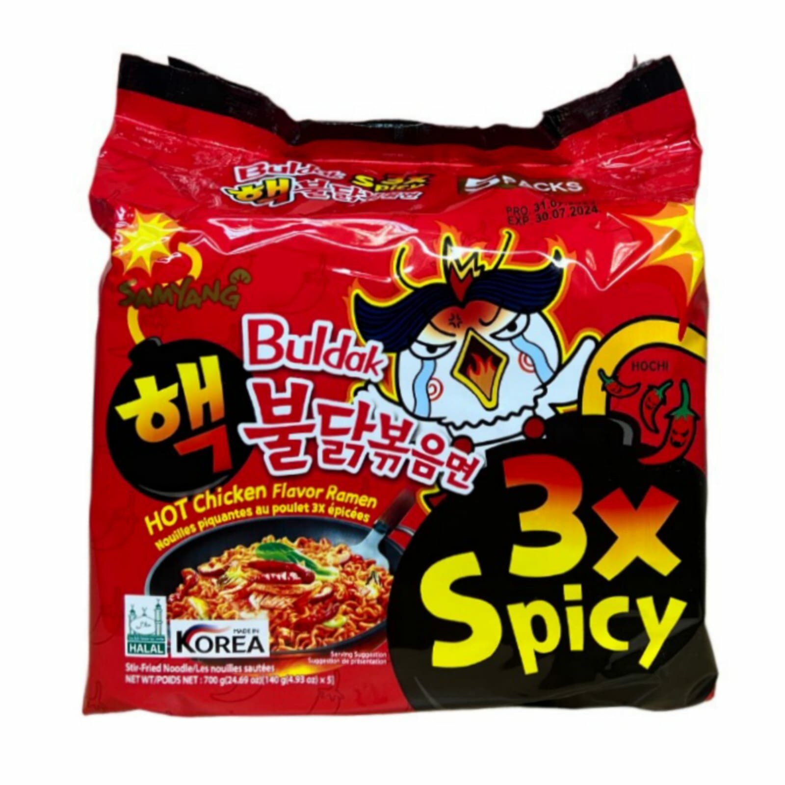 Лапша Самьянг x3 Spicy, Самая острая Корейская Огненная лапша, Халяль, 5 пачек по 140г
