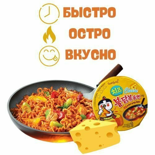 Острая корейская лапша быстрого приготовления Samyang Buldak Cheese Hot Chicken Flavor Ramen со вкусом курицы в сырном соусе (Корея), 70 г интересное: