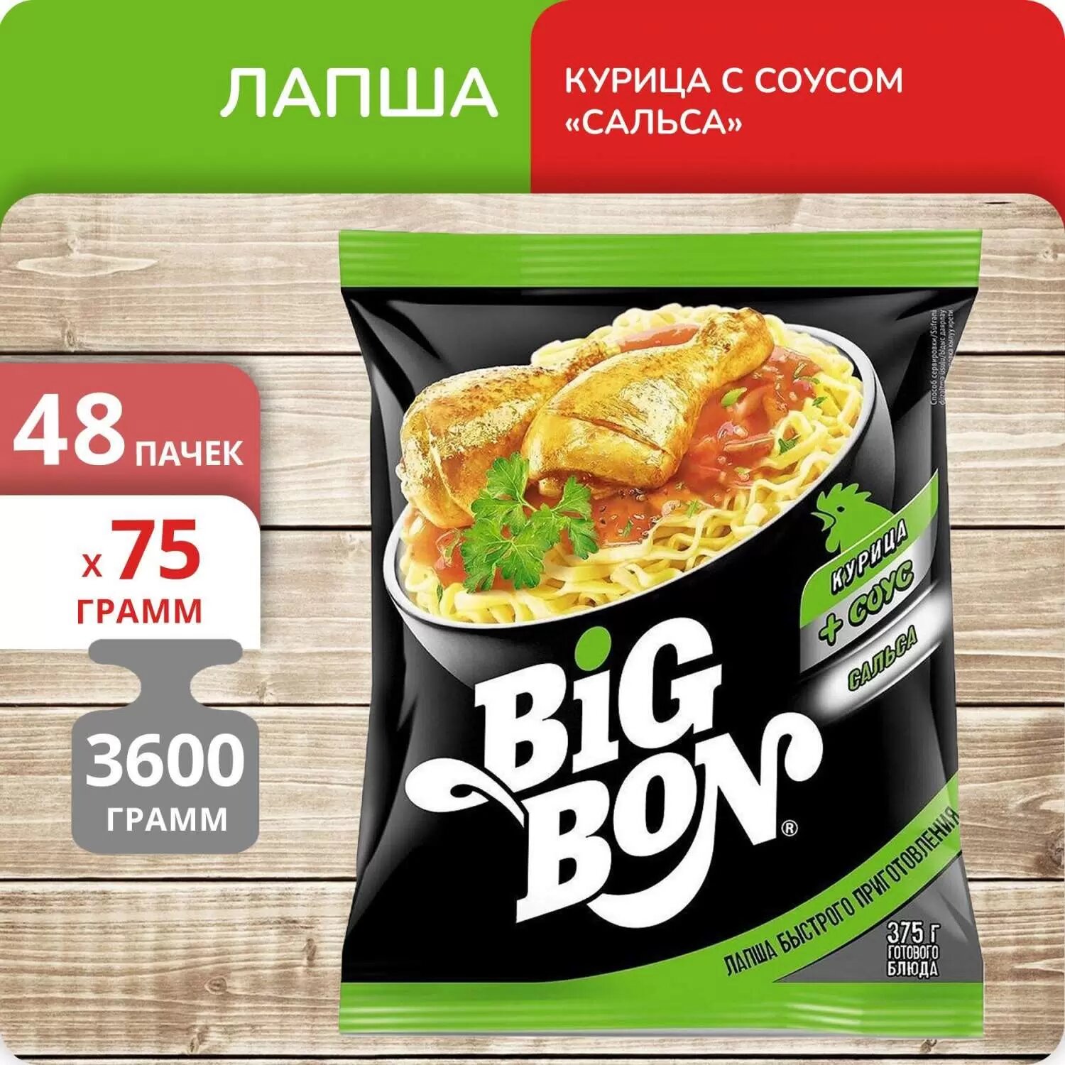 Купить Лапша BIGBON Курица + соус Сальса 75г. 48шт.