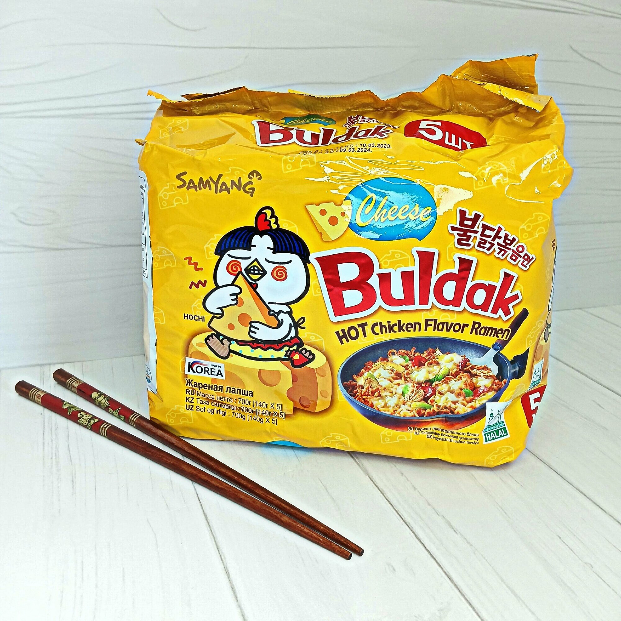 Лапша Самьянг Buldak, Корейская Огненная лапша, Рамен со вкусом горящей курицы, Challenge, Халяль, 5 пачек по 140г