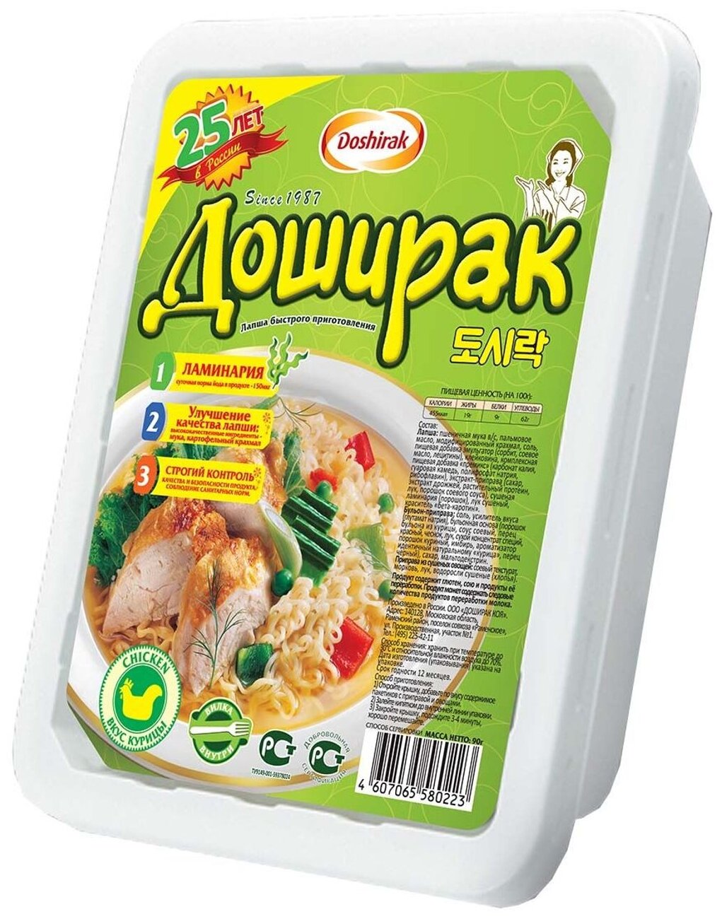 Doshirak Лапша со вкусом курицы, 90 г, 24 шт. интересное: