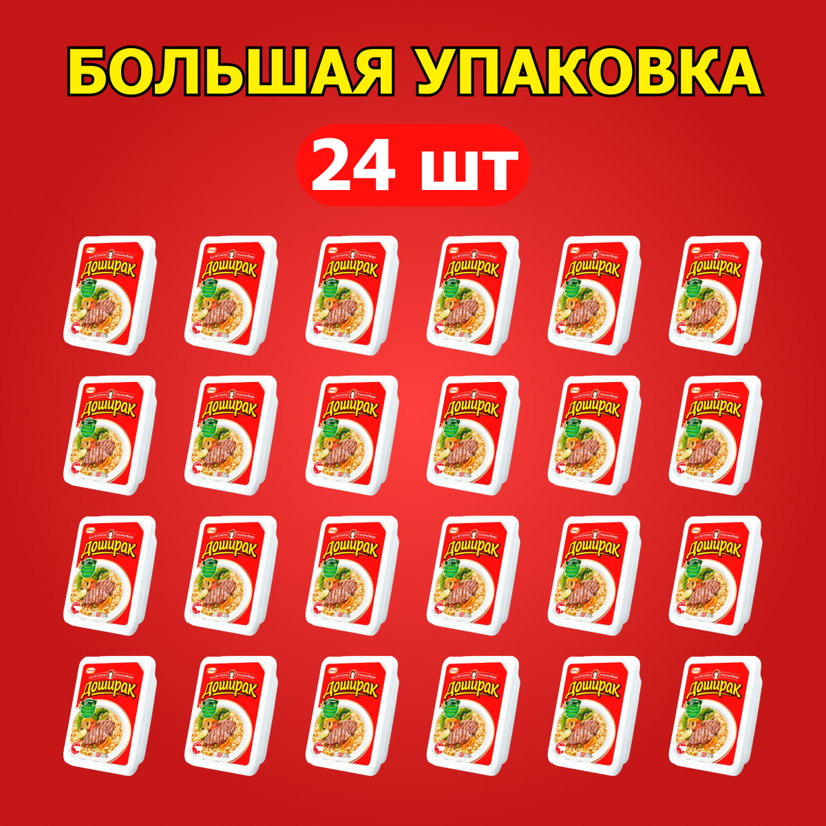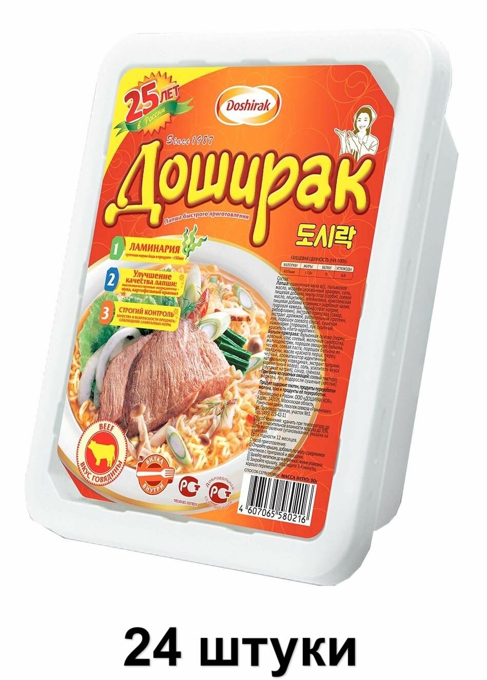Упаковка 24 штуки Лапша Доширак говяжья (конт) 90г Россия интересное: