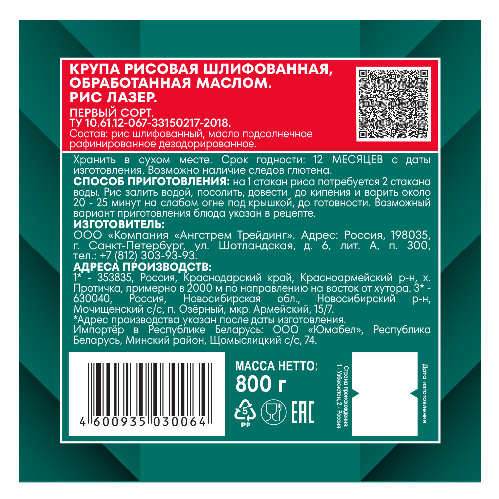 Ниже Вы можете прочитать отзывы на Рис националь Лазер 800г, ознакомится с подробными характеристиками, посмотреть интересные обзоры и фотографии на Рис националь Лазер 800г.