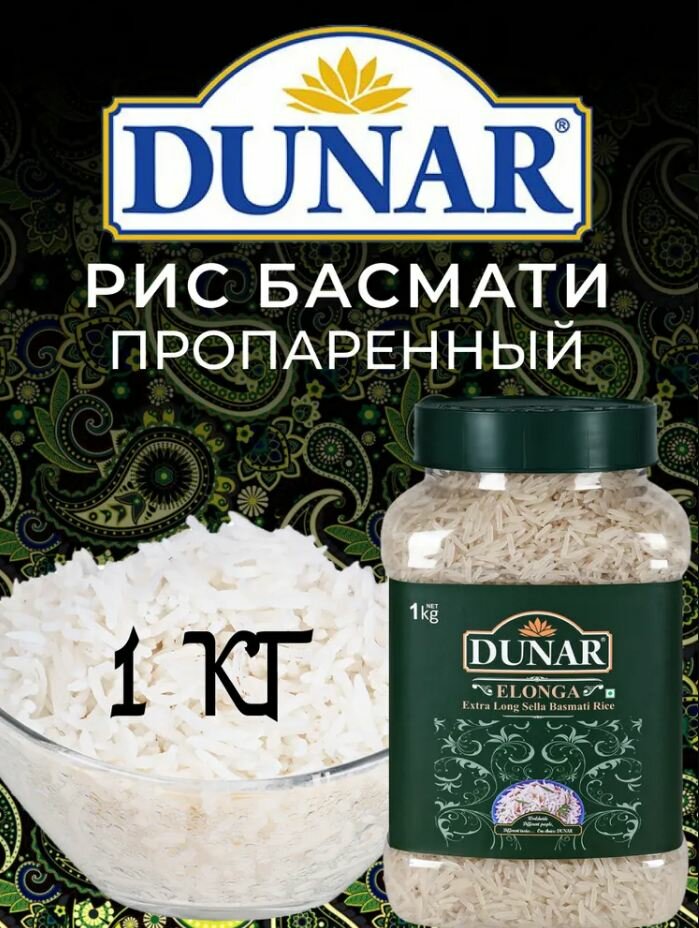 Купить Рис басмати Элонга Селла Dunar 1 кг индия для плова и варки длиннозерный белый
