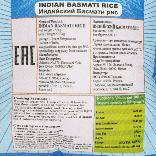 Рис басмати индийский непропаренный Nano Sri, 5 кг интересное: