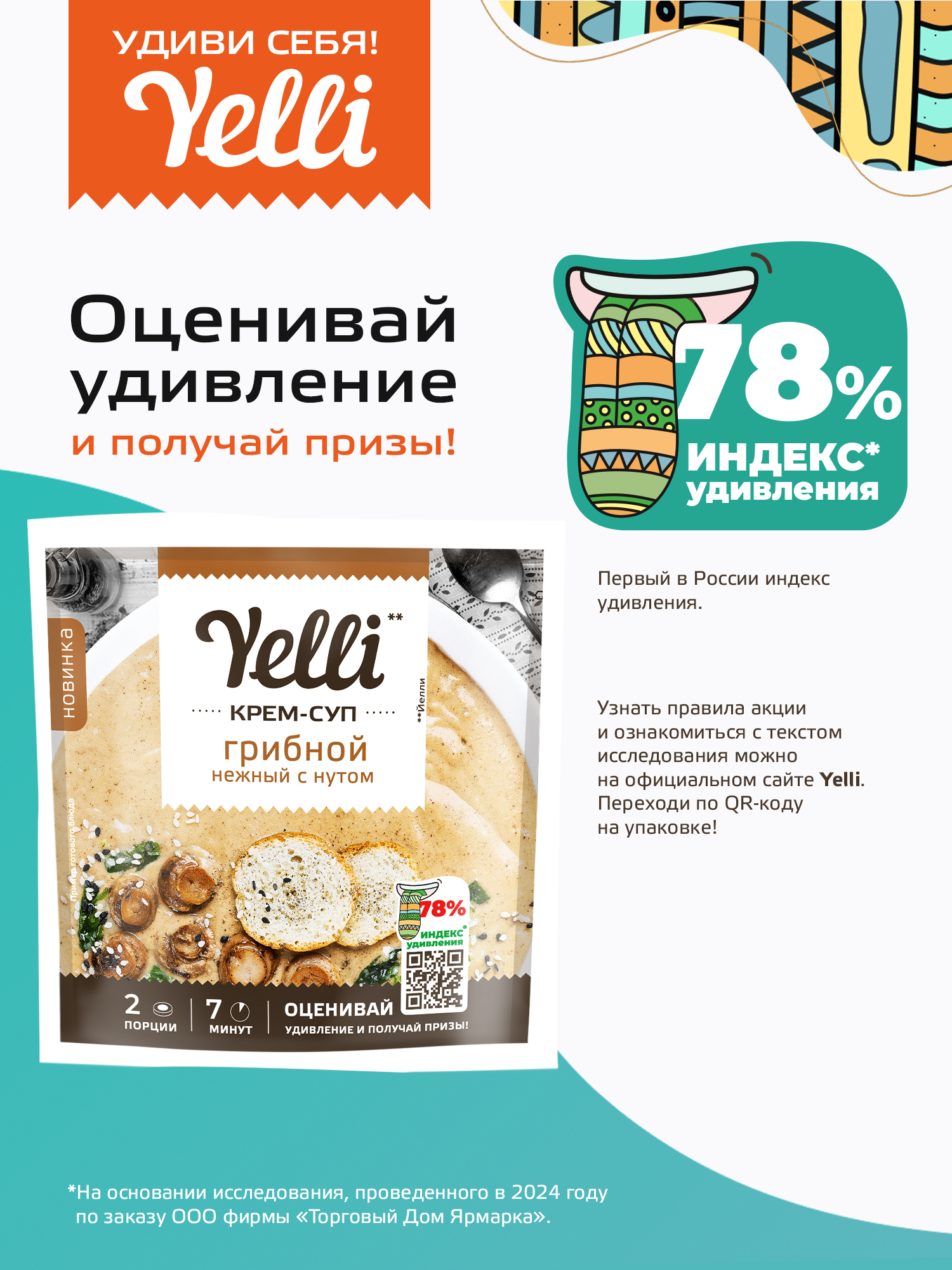 СохранитьКрем-суп грибной нежный с нутом Yelli 70 г / Смесь для приготовления первого блюда интересное: