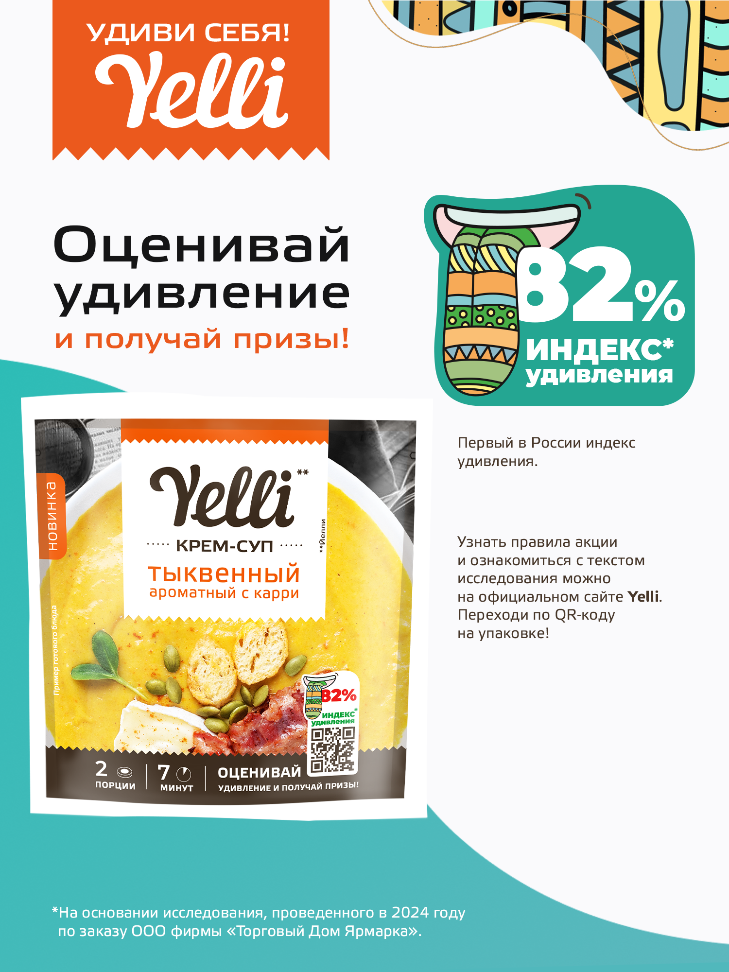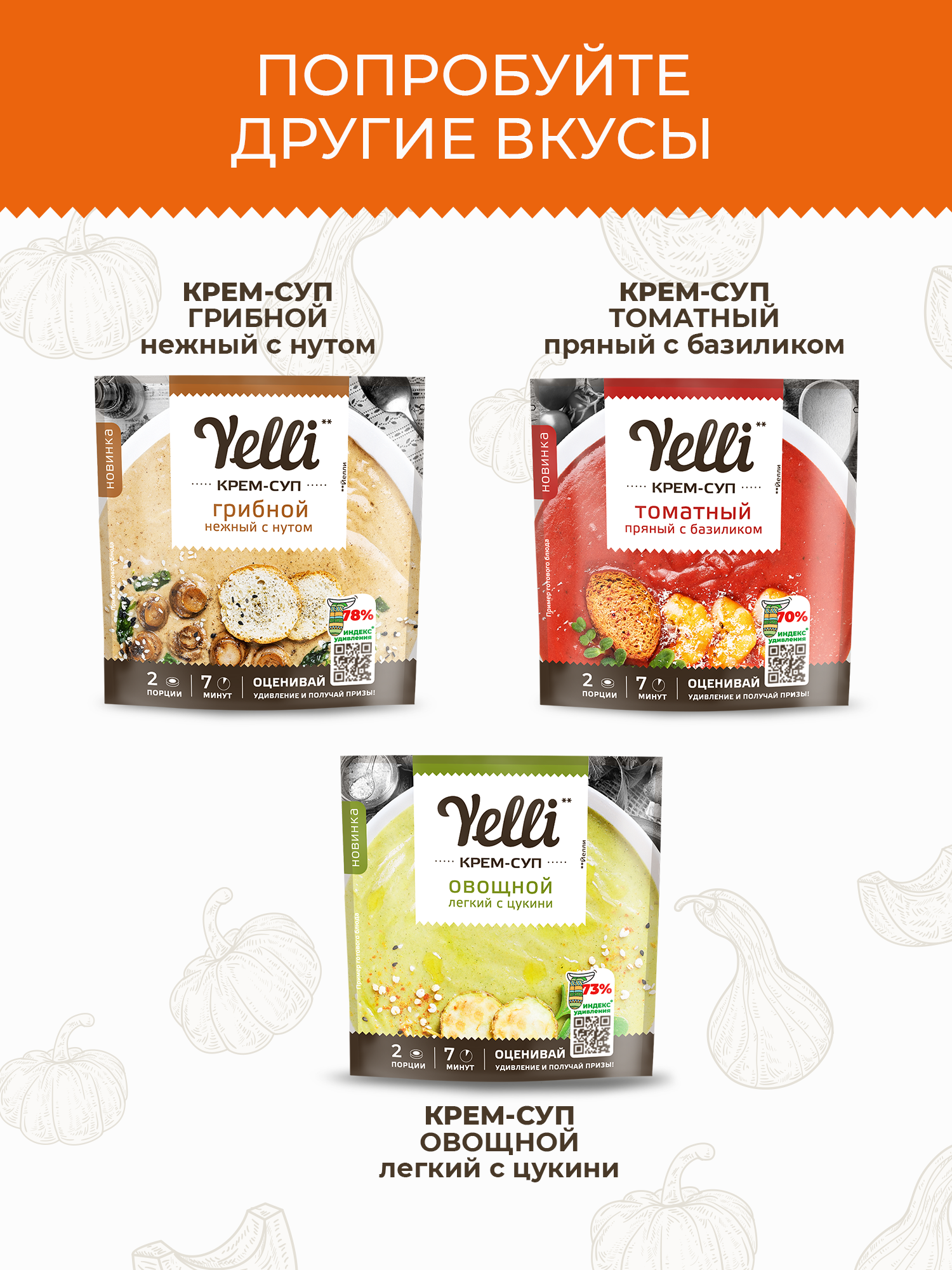 СохранитьКрем-суп тыквенный ароматный с карри Yelli 70 г / Смесь для приготовления первого блюда интересное: