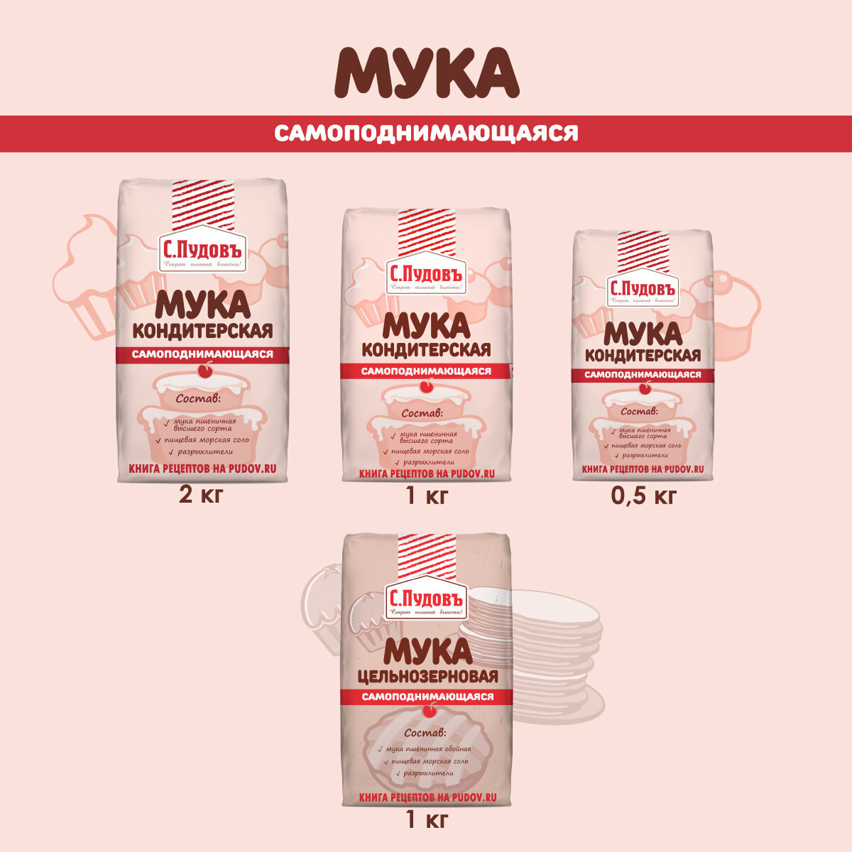 Мука С.Пудовъ пшеничная кондитерская самоподнимающаяся высший сорт 1 кг