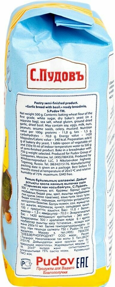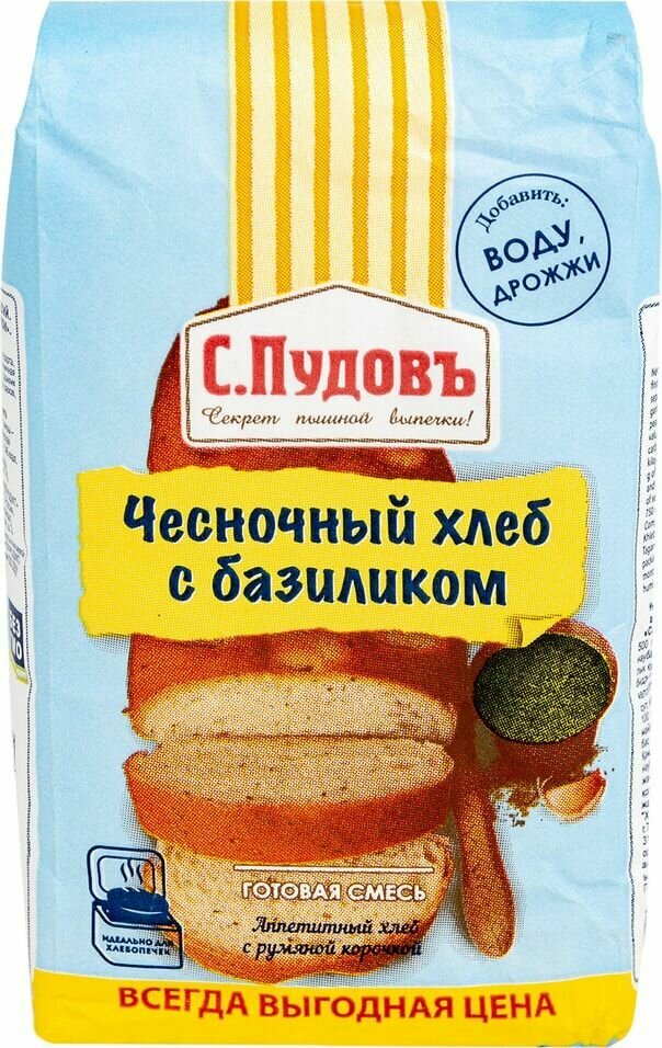 Смесь для выпечки "Чесночный хлеб с базиликом" , С.Пудовъ, 500 гр. интересное: